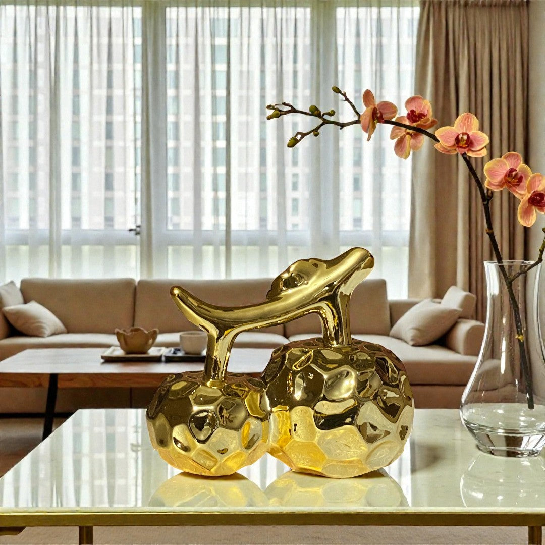 "Eden’s Embrace" offers a modern take on the iconic fruit of knowledge. The vibrant gold hue symbolizes both wealth and wisdom, while the apple’s rounded shape invites curiosity. This handcrafted ceramic piece serves as an elegant metaphor for the pursuit of knowledge and the allure of forbidden beauty. A sophisticated accent for any space, it’s an ideal addition to those with a taste for luxury and timeless design.