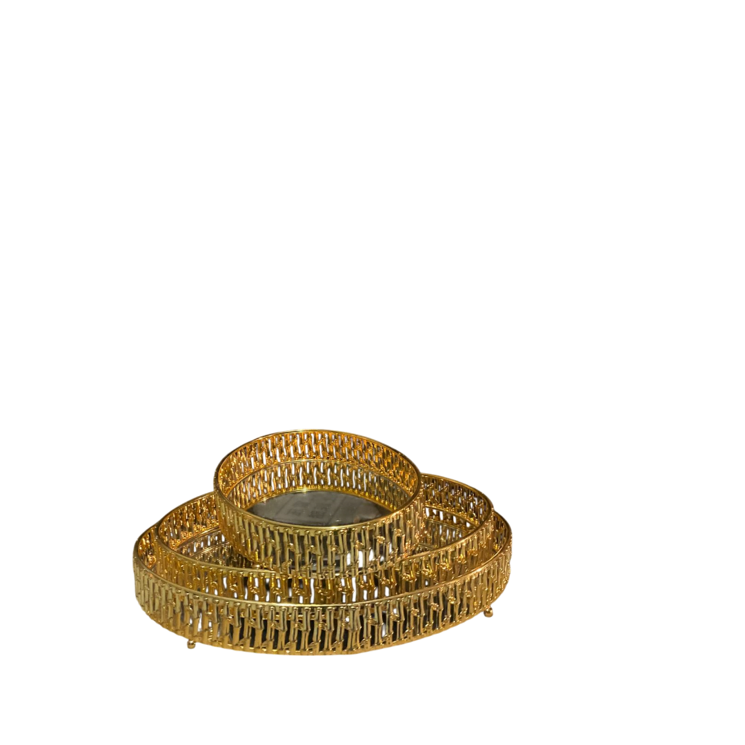 Transform any surface into a luxurious display with the Royal Gold Mirror-Top Decorative Metal Tray. The reflective mirror base adds depth, shine, and elegance, making perfumes, candles, and décor pieces look even more stunning. Surrounding the mirror is an intricately designed gold lattice frame that brings richness and sophistication to your décor.