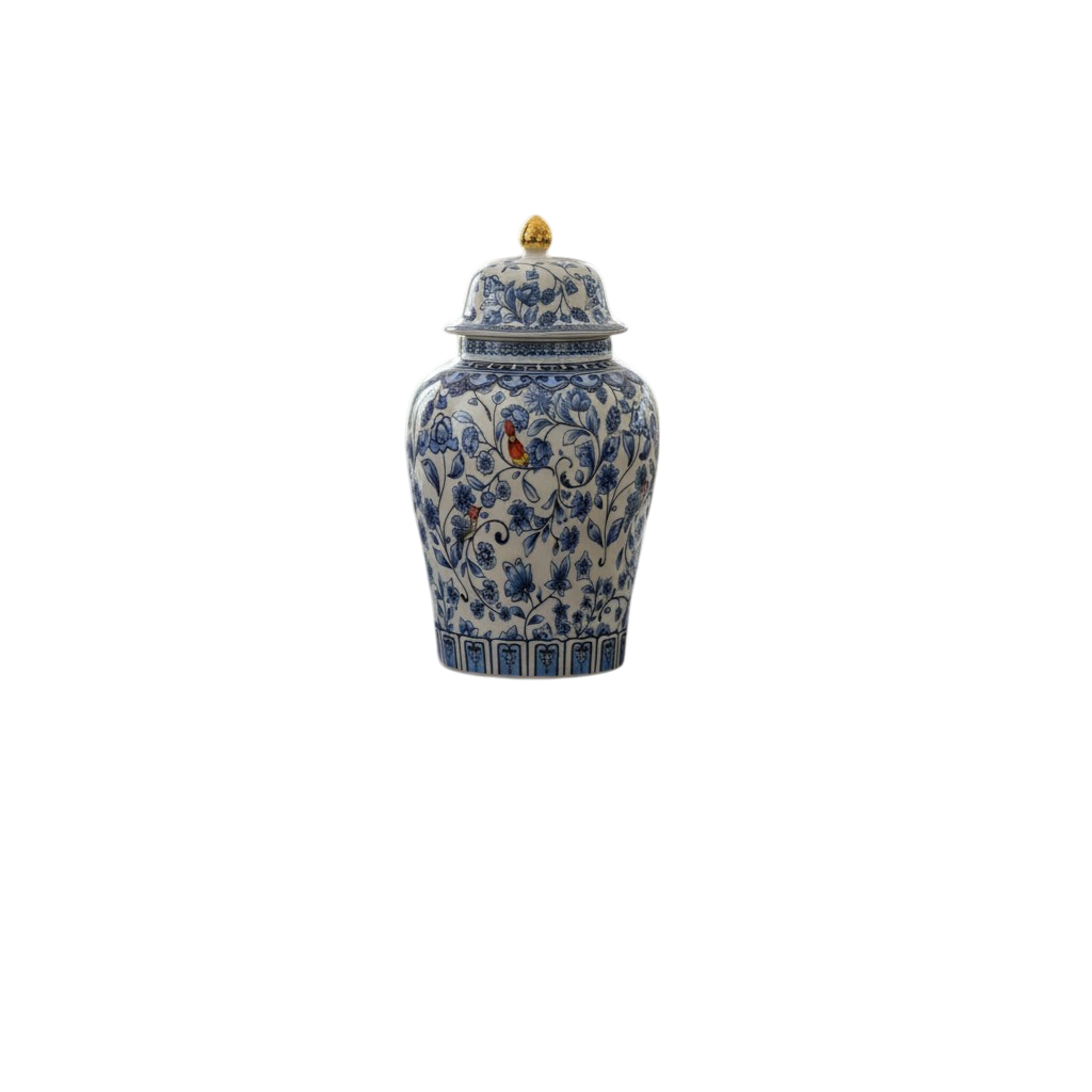 Designed to be both practical and decorative, this jar adds a sophisticated accent to countertops, coffee tables, or display shelves. With its premium blue glaze and classic silhouette, the Blue Royale Keepsake Jar enhances your space with a sense of charm, heritage, and luxury.