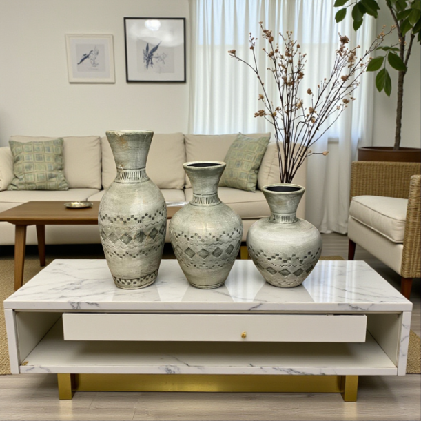 The Golden Accent Statement Vase is designed to stand out. With its premium ceramic build and subtle luxury detailing, it adds warmth and sophistication to any décor theme. Whether styled alone or paired with floral arrangements, this vase becomes a focal point in any room.