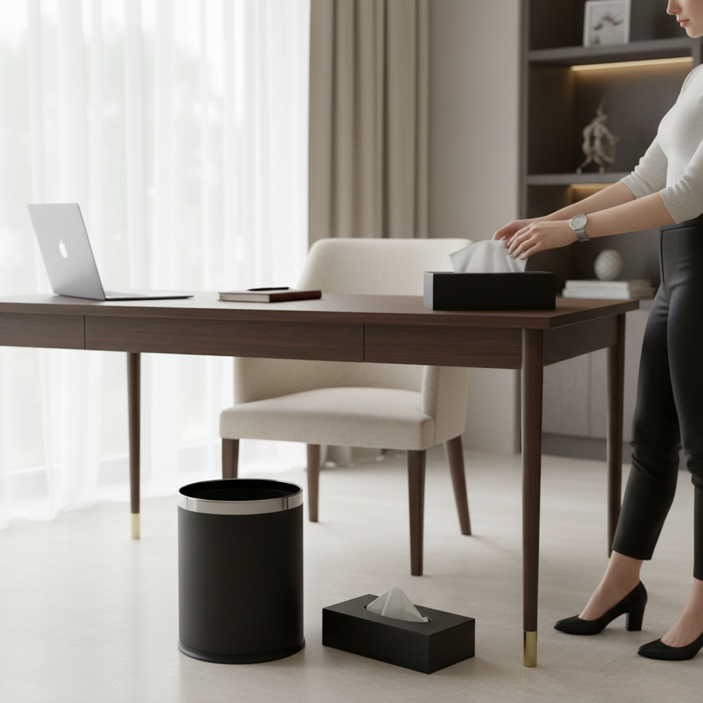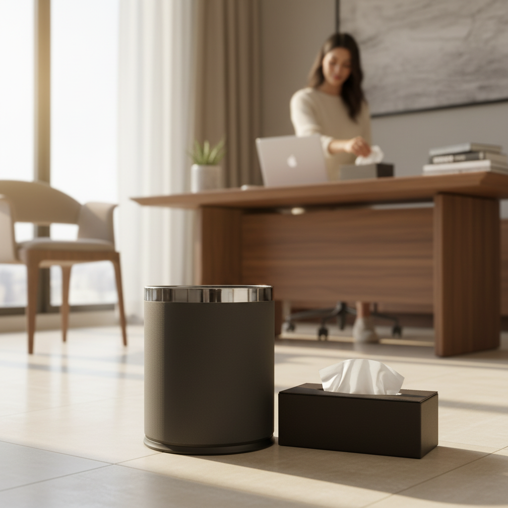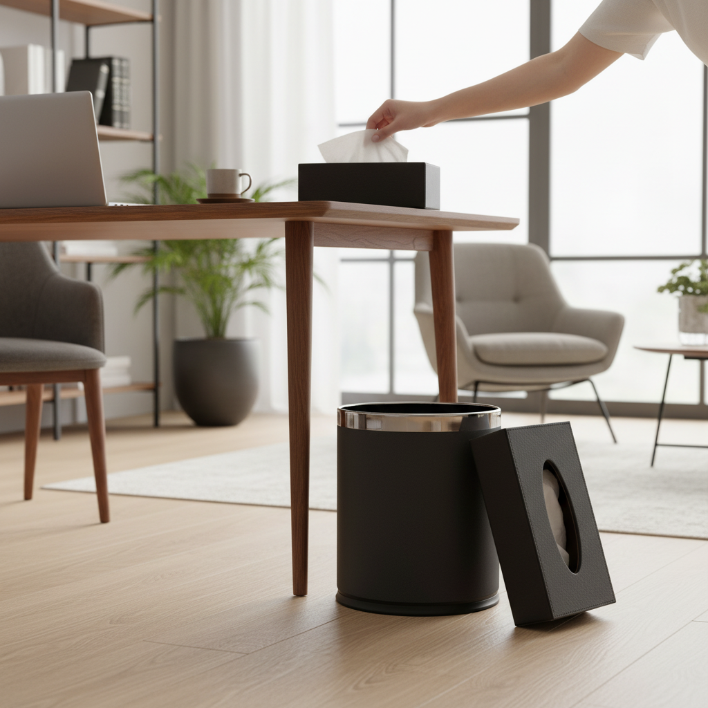 This handcrafted premium leather dustbin is designed to add elegance and practicality to any space. Made from high-quality leather, it is durable, easy to clean, and perfect for homes, offices, hotels, and workspaces. Its modern design blends style with everyday functionality.
