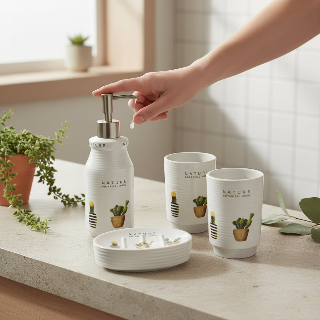 The Elara Ceramic Bathroom Set is designed to bring refined simplicity and coordinated elegance to modern bathrooms. Crafted from high-quality ceramic with a smooth, glossy finish, this 3-piece set offers both beauty and everyday functionality. Subtle decorative detailing adds a contemporary touch, making Elara ideal for residential, hotel, and luxury washroom spaces.