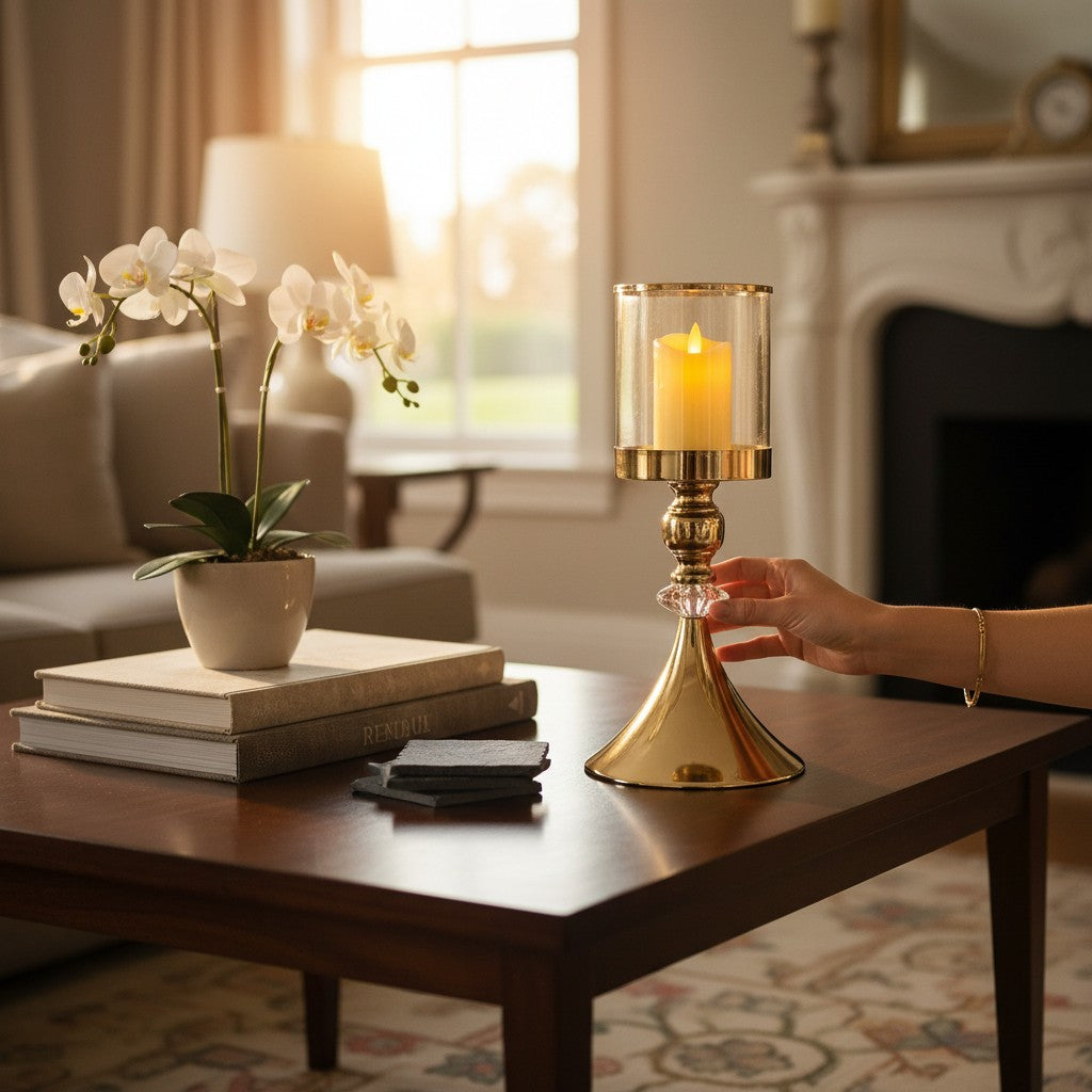 A poetic interpretation of nature's elegance, the Crystal Vine Candle Stand is inspired by golden tendrils climbing toward the light. With a winding brass stem that resembles a climbing vine, it holds delicate crystal drops that shimmer like morning dew. Every curve and contour is crafted to mimic organic flow—graceful, deliberate, and full of life. Designed for interiors that bridge classic and bohemian, this stand adds whimsy and refinement in equal measure. Place it on a centerpiece table or nestled into an indoor garden corner, and it becomes a luminous piece of functional art.