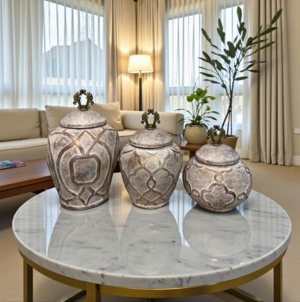 The Luxe Bloom Contemporary Candy Jar combines modern elegance with artistic detailing. Featuring a stylish blue floral pattern and sleek gold lid, this jar is designed to complement contemporary interiors. Perfect for candies, cookies, or dry snacks, it serves as a beautiful statement piece in any modern home.