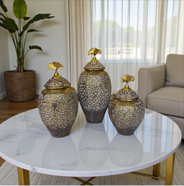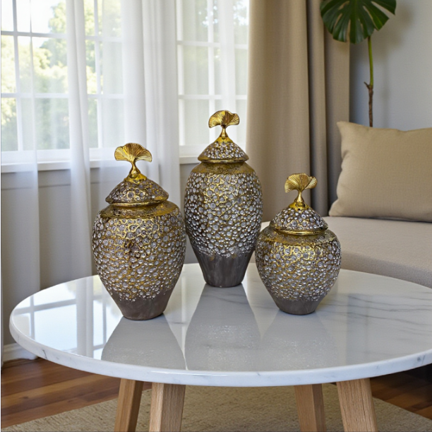 Inspired by vintage Victorian charm, this beautifully crafted ceramic candy canister showcases intricate blue blossom patterns with a refined gold lid. Its graceful silhouette and detailed design create a nostalgic yet elegant atmosphere in your home. Perfect for sweets, chocolates, or decorative use, this piece adds warmth and sophistication to any décor style.