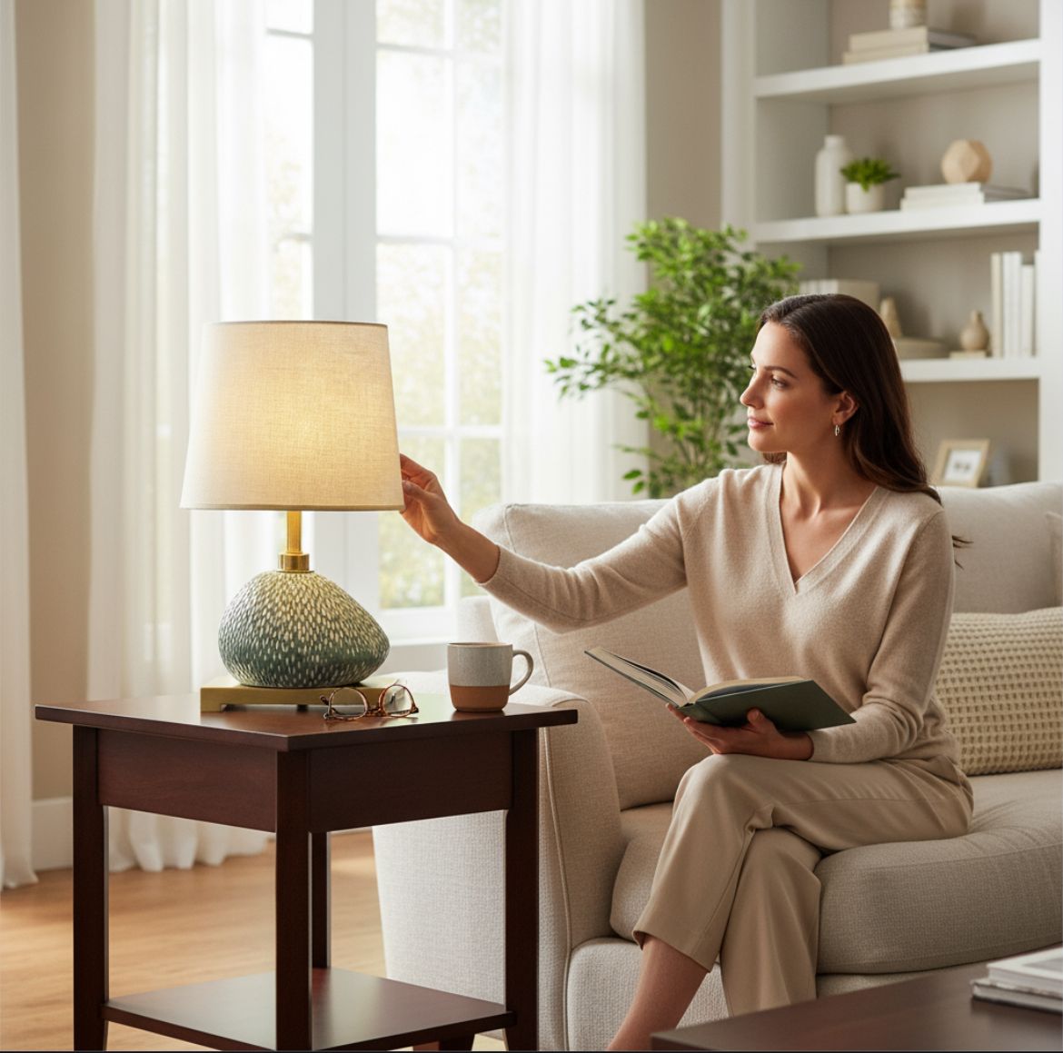 This unique ceramic lamp base is crafted in a smooth pebble-inspired form, featuring a soft green finish adorned with hand-applied dotted patterns that create a natural, organic texture. Resting securely on a square brass stand, the design balances earthy artistry with refined metallic elegance. Distinctive and versatile, this lamp base serves as both a functional foundation for lighting and a decorative statement piece, ideal for modern, eclectic, or nature-inspired interiors.