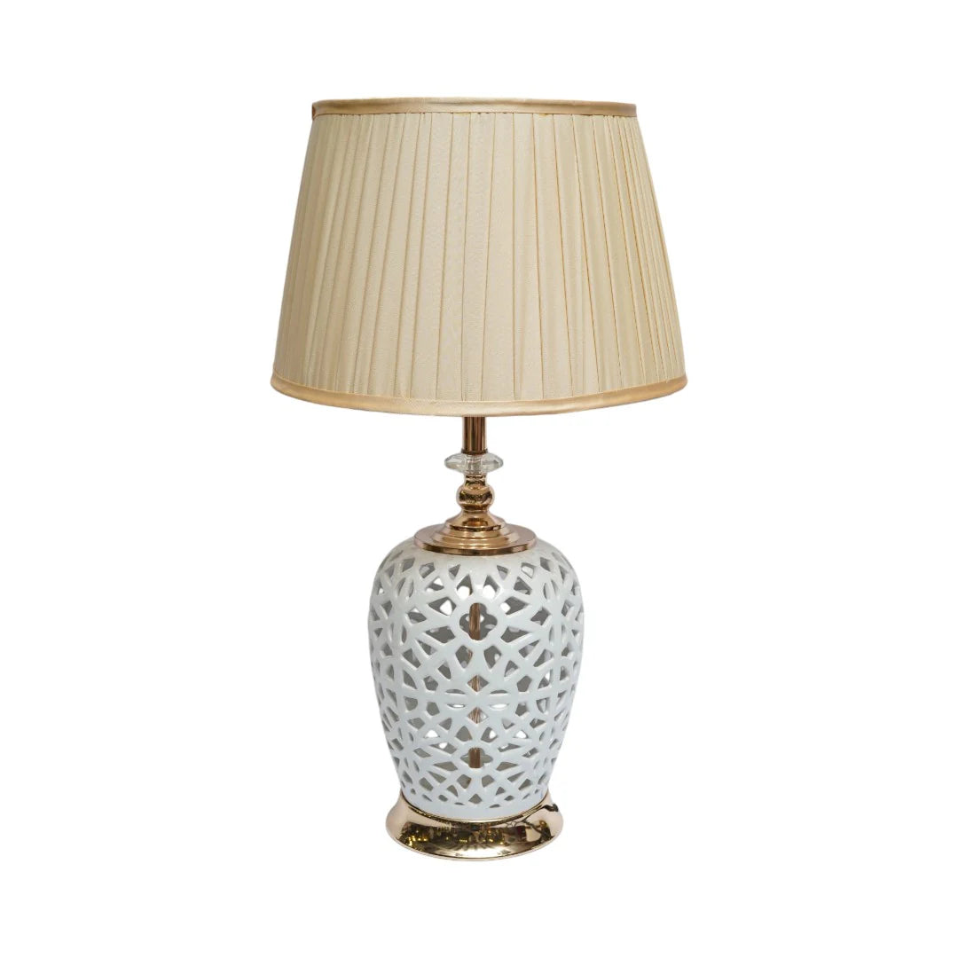 Channeling the elegance of classical design with a modern twist, the Elara Regal Ceramic Lamp boasts a golden ceramic base accented with luxe detailing. Topped with a complementary linen shade, this piece provides soft illumination and stands as a graceful focal point in any interior.