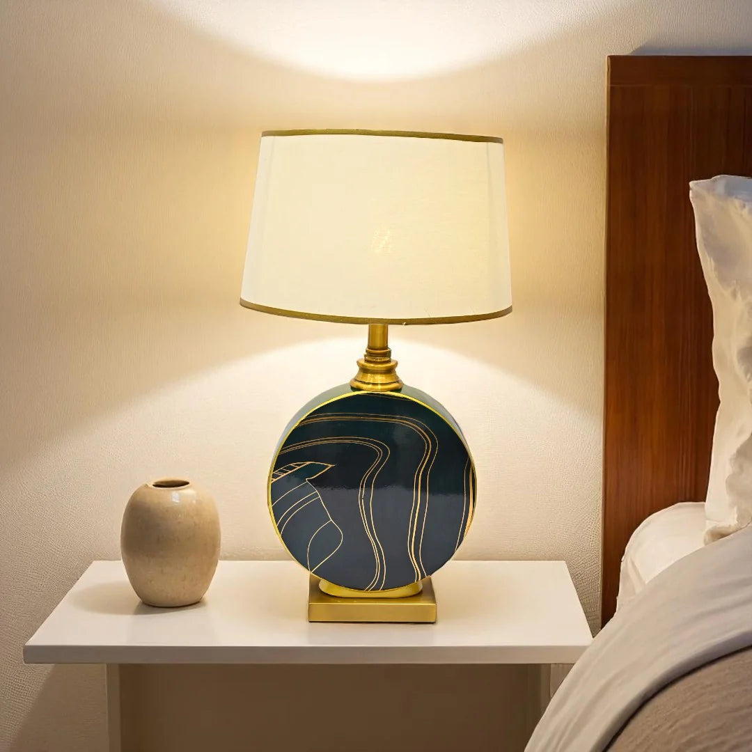 The Sagecrest Green Ceramic Table Lamp offers a bold yet calming statement with its rich green ceramic base and matching ceramic shade. Designed to bring a touch of nature-inspired sophistication to any setting, its unified color palette and smooth, glossy finish create a refined, modern look. Perfect for side tables, desks, or bedside use, it adds warmth and style to contemporary or eclectic interiors.