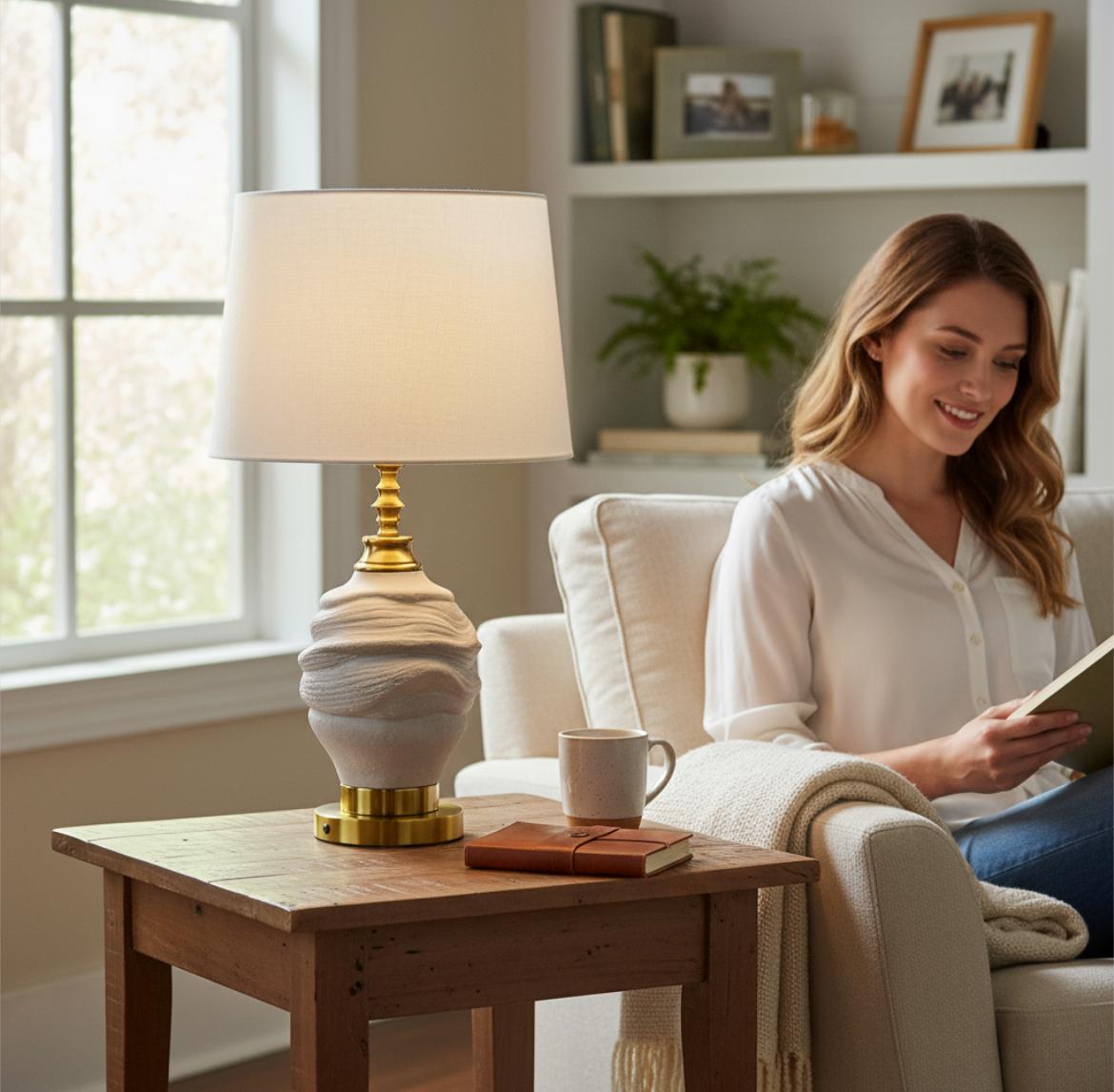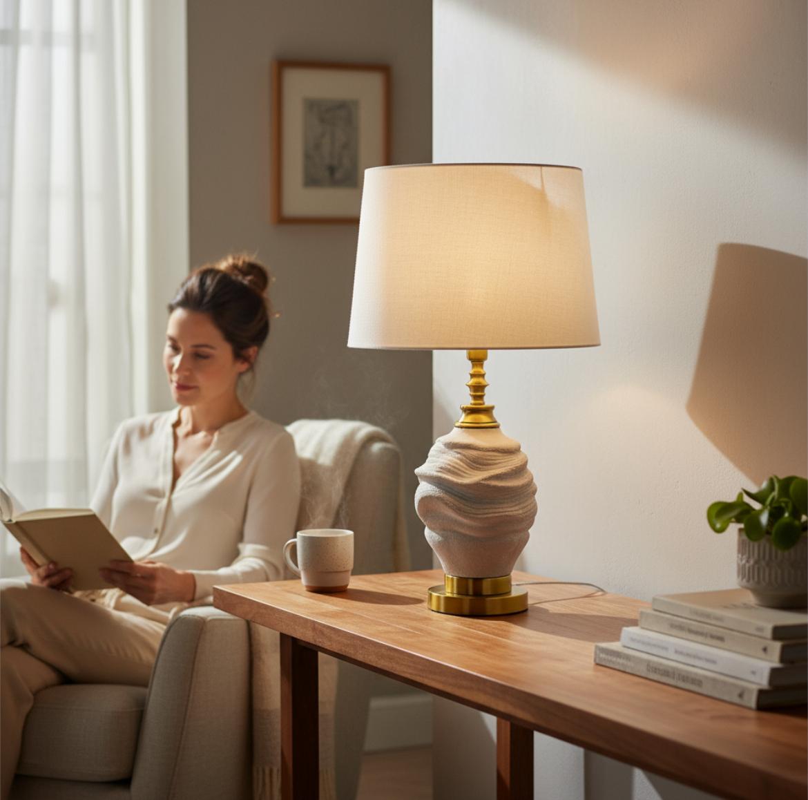 This ceramic lamp base features a sculpted, wave-like textured design reminiscent of natural stone formations, giving it a raw yet artistic appeal. The earthy matte finish contrasts beautifully with polished brass detailing, creating a balance of organic charm and refined elegance. With its sturdy brass base and artisanal craftsmanship, this piece stands out as both a decorative accent and a functional foundation for stylish lighting in contemporary or rustic-inspired interiors.