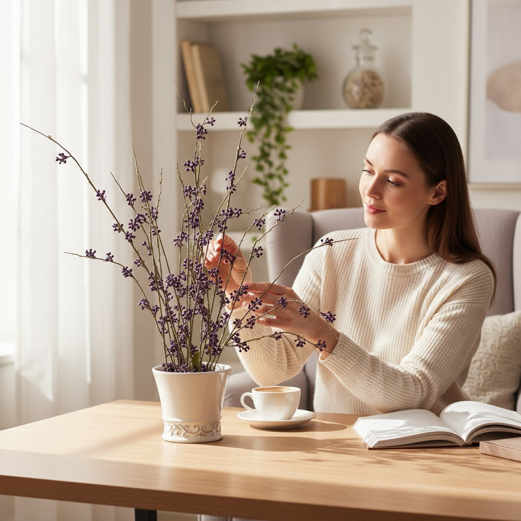 The Peach Serenade Ceramic Vase embodies a melody of elegance and warmth. Its pristine white ceramic base features a refined, classic silhouette that gently flares at the rim, supporting a lively arrangement of soft peach and coral blooms. The delicate contrast between the white vessel and the warm florals creates a soothing yet captivating aesthetic. Handcrafted for those who appreciate subtle beauty, this vase adds a poetic charm to dining spaces, entryways, or bedside tables — a graceful reminder that art can bloom in the simplest of forms.