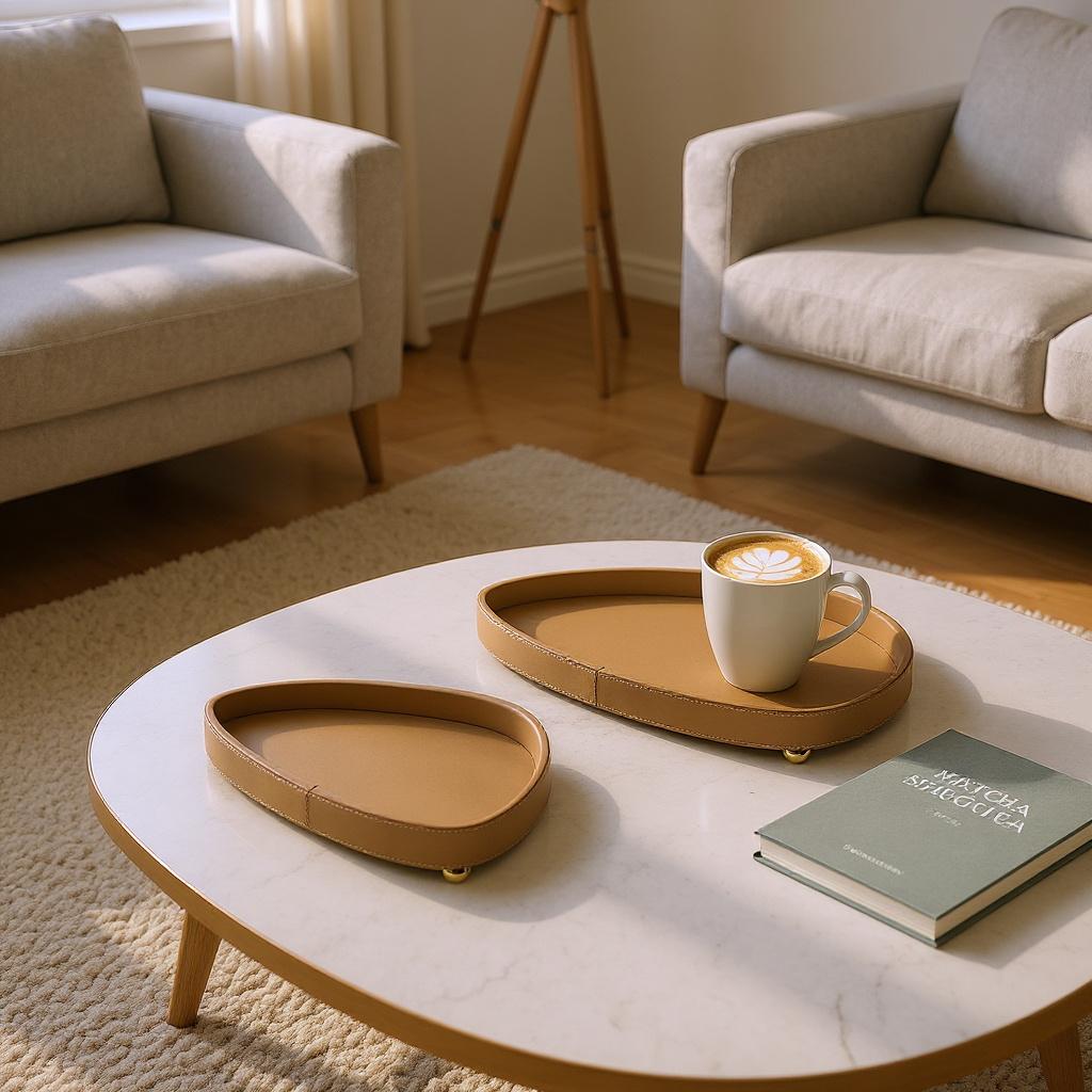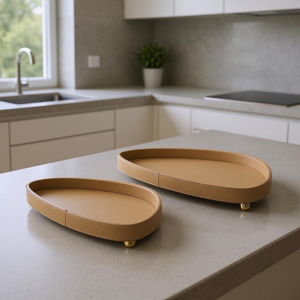 Elevate your space with this 2-piece triangular leather tray set in a rich cognac brown. Crafted from premium leather with a smooth, polished finish, these trays combine modern geometric design with functional elegance. Perfect for organizing essentials, serving, or displaying décor, they add a warm, sophisticated accent to any room.