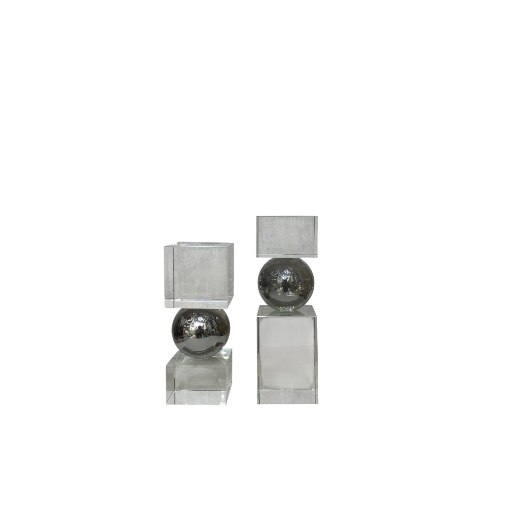 The Eclipse Crystal Sphere Decor is a striking statement piece that blends modern minimalism with timeless elegance. Featuring a solid crystal base that enhances light reflections, each orb rests securely within a transparent block, creating a floating illusion. The smoky-gray spheres add depth and sophistication, making this ornament perfect for display on consoles, coffee tables, or office desks. Crafted for both weight and brilliance, it brings a sense of refined luxury to any interior space.