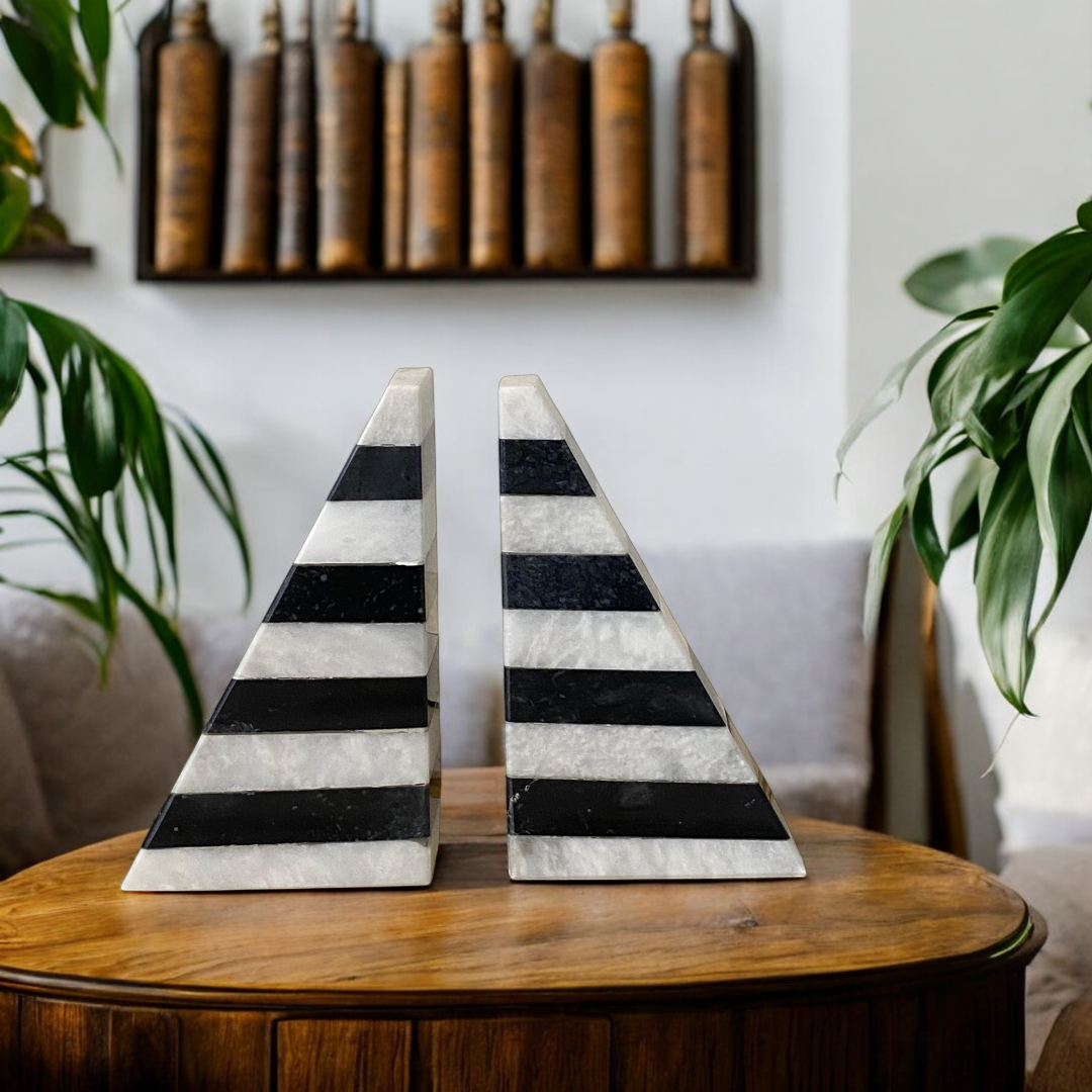 The Luxury Black & White Heavy Marble Bookends are a perfect blend of strength, style, and sophistication. Crafted from premium quality natural marble, each piece showcases a stunning contrast of deep black and pure white tones, highlighting the beauty of natural stone. Their solid weight provides excellent support for books, while their sleek geometric form adds a touch of modern elegance to any shelf or desk.