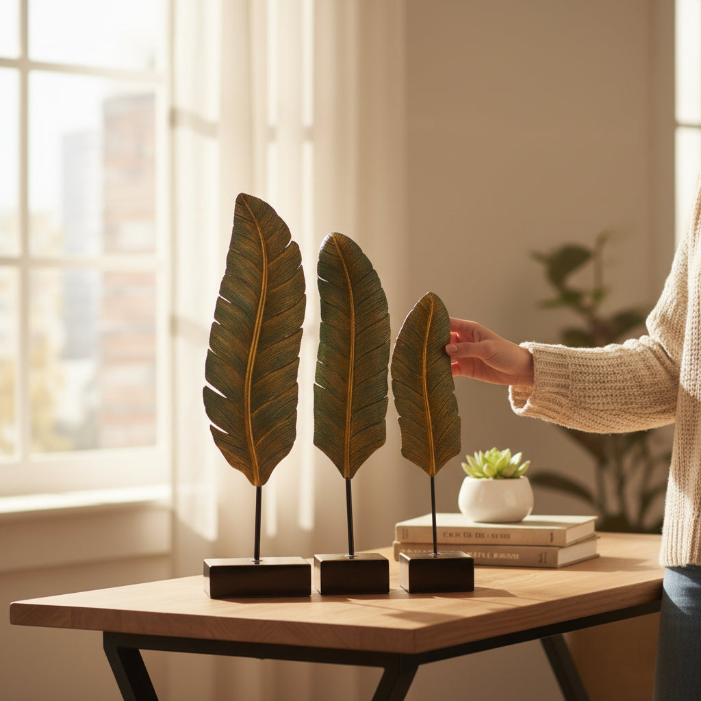The Modern Botanical Fiber Leaf Sculpture is a refined decorative accent designed to enhance contemporary interior spaces with understated elegance. Crafted from high-quality fiber material, this sculpture features a meticulously shaped leaf form inspired by natural botanical elements. Its textured surface and carefully finished details reflect skilled craftsmanship while maintaining a clean, modern aesthetic.