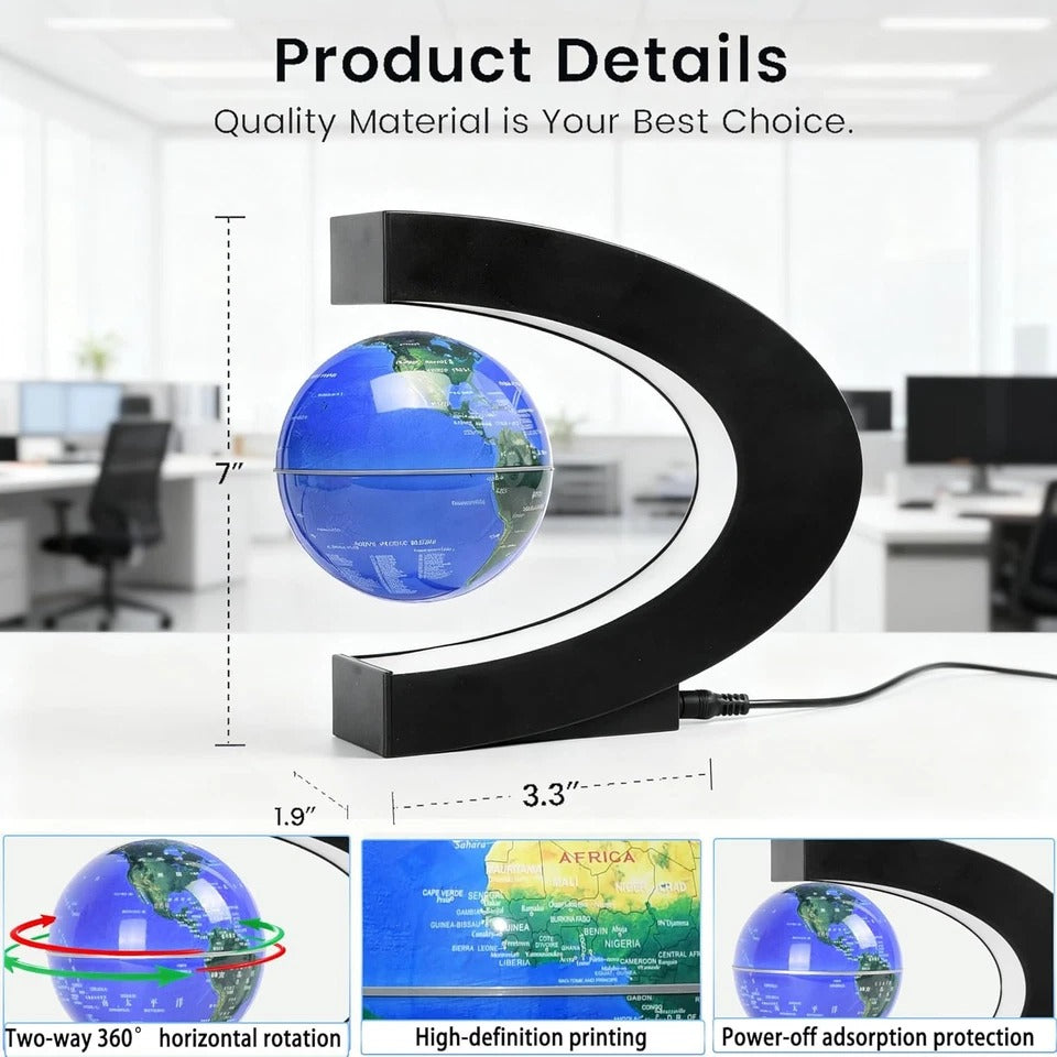 The Modern Maglev LED World Map Globe is a stunning decorative piece that combines innovation with style. Designed with magnetic levitation technology, the globe floats gracefully above its base, creating a captivating display for any room. The built-in LED lighting enhances its world map details, making it both functional and visually striking. Perfect for living rooms, offices, or study spaces, this globe serves as a unique desk accessory and conversation piece, blending modern design with educational value.