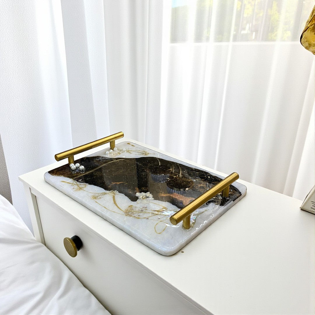 Perfect for serving beverages, displaying candles, or organizing essentials, this tray elevates any setting—from coffee tables and countertops to dining and vanity spaces. Durable, elegant, and versatile, it’s the ideal décor piece for those who appreciate refined craftsmanship and contemporary style.