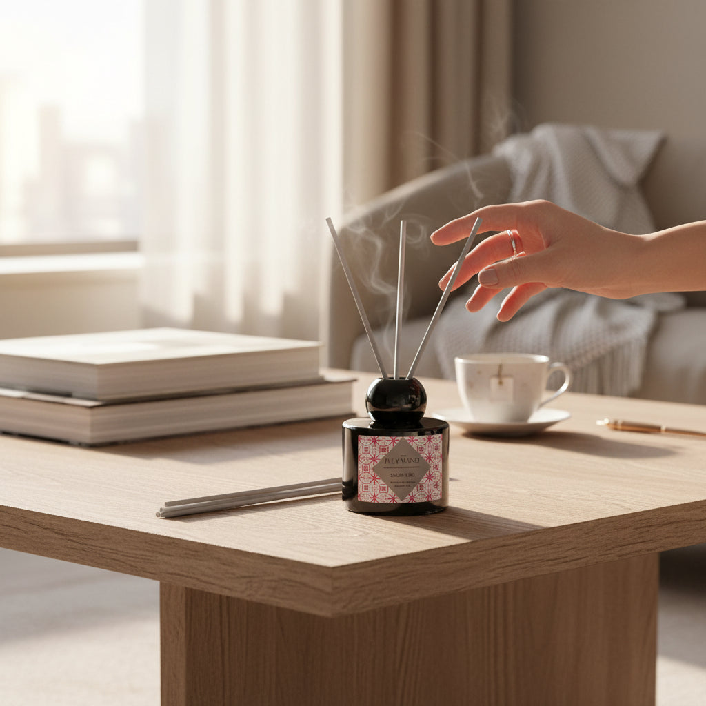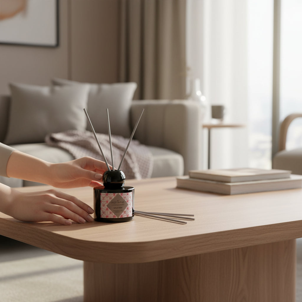 Aera Noir is a sophisticated reed diffuser designed to elevate interior spaces with a smooth, long-lasting fragrance. Housed in an elegant dark glass vessel, it delivers controlled scent diffusion while adding a refined decorative accent to modern living and working environments.