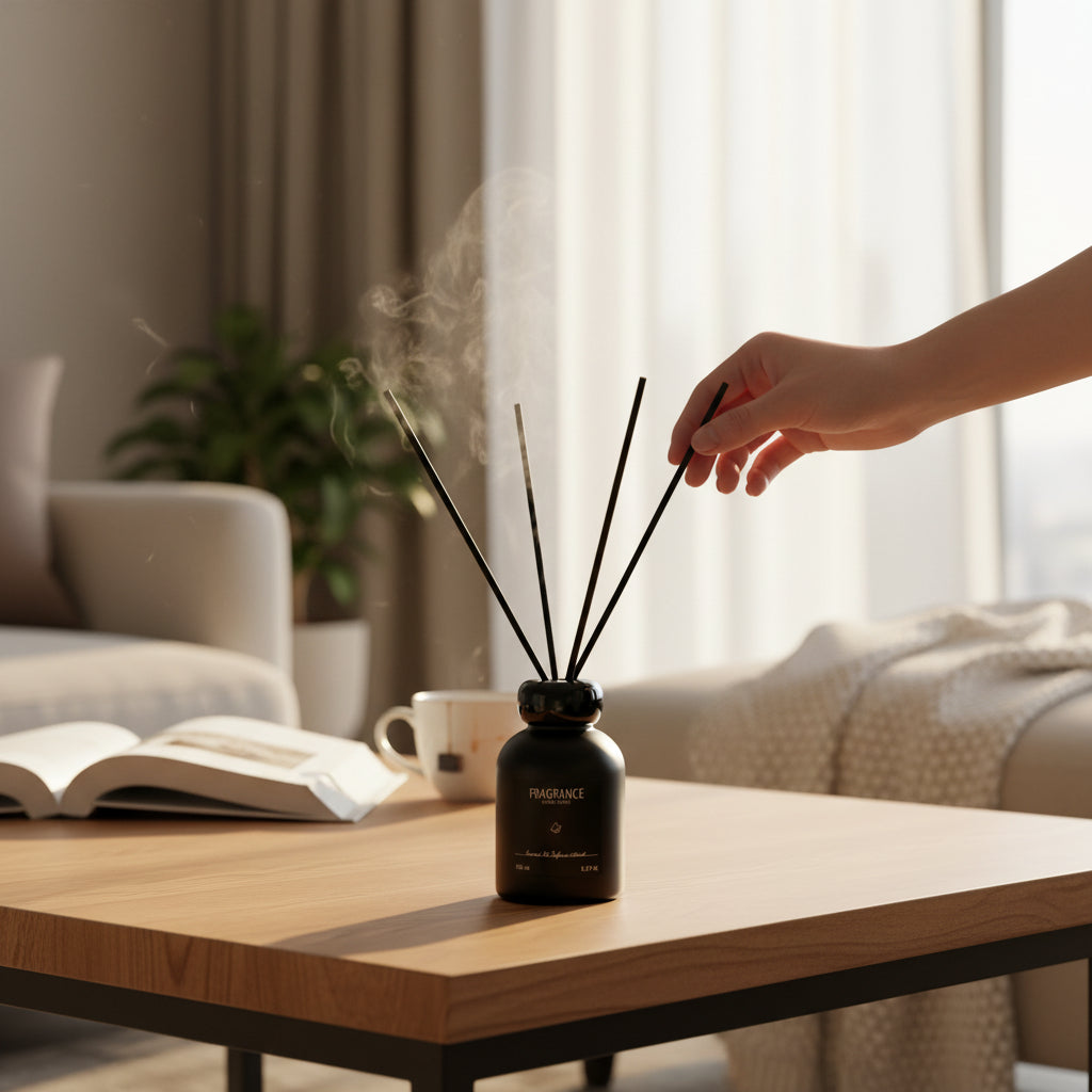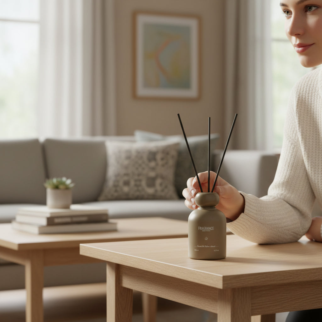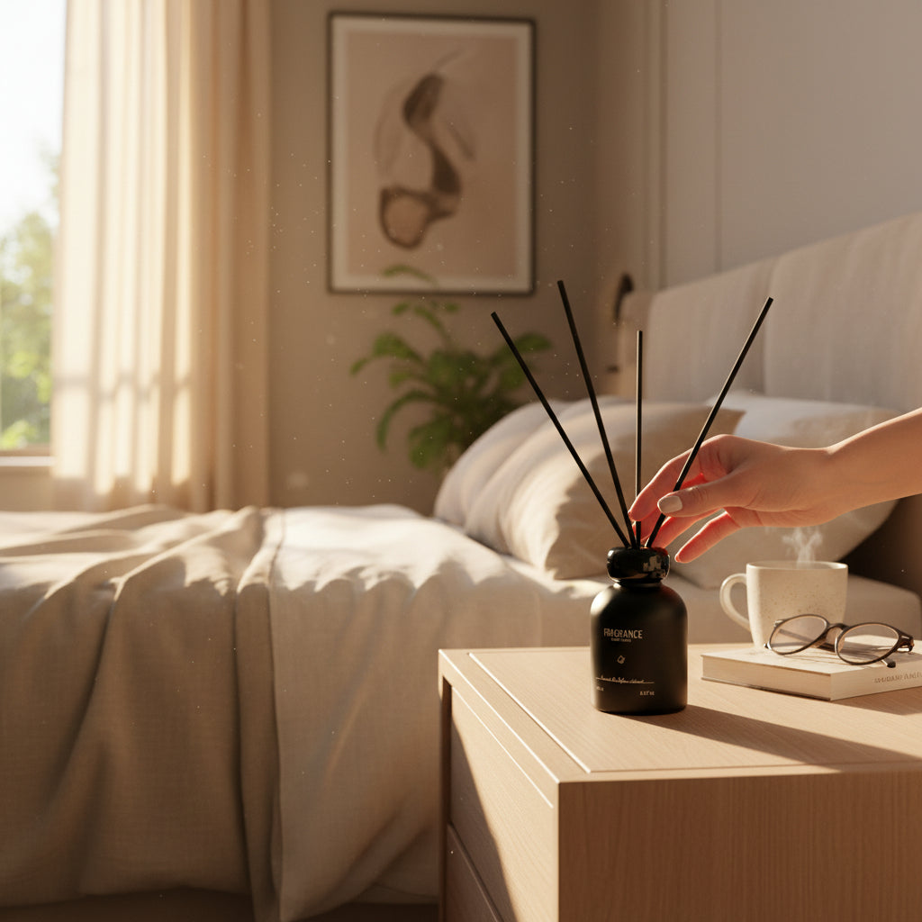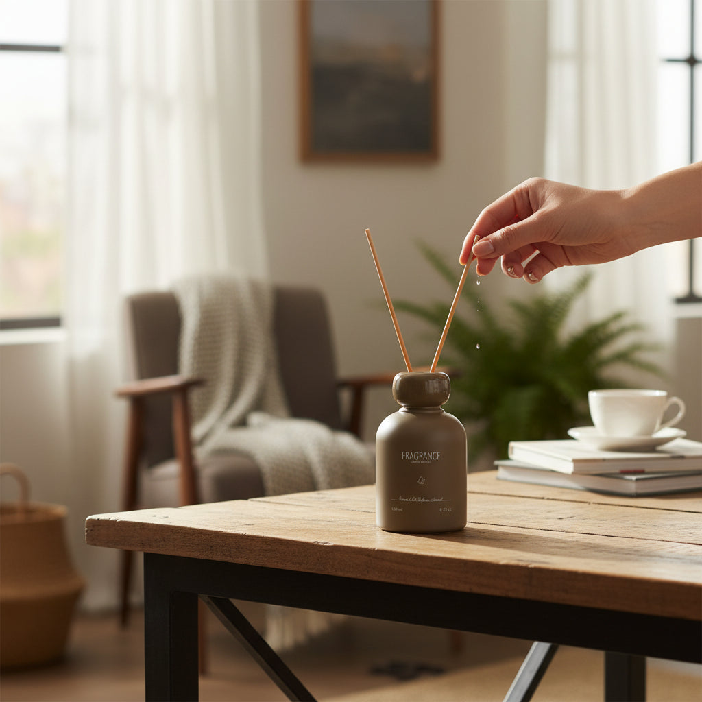 A refined reed diffuser designed to elevate any space with effortless elegance. Housed in a soft-touch matte bottle, Obsidian & Sand blends modern design with long-lasting fragrance diffusion. The natural reeds gently release scent throughout the room, creating a calm, balanced atmosphere that feels both warm and sophisticated. Perfect for living rooms, bedrooms, and workspaces.