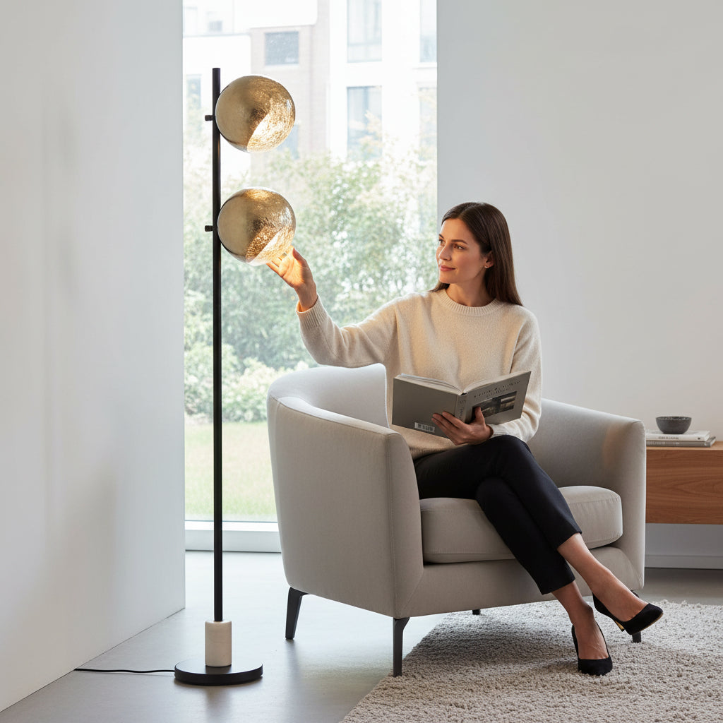 Make a bold statement with the Midnight Halo, a striking 70.8-inch floor lamp featuring a sleek black crystal bowl shade. This sophisticated design combines deep, dark elegance with a sculptural form that casts a captivating ambient glow.