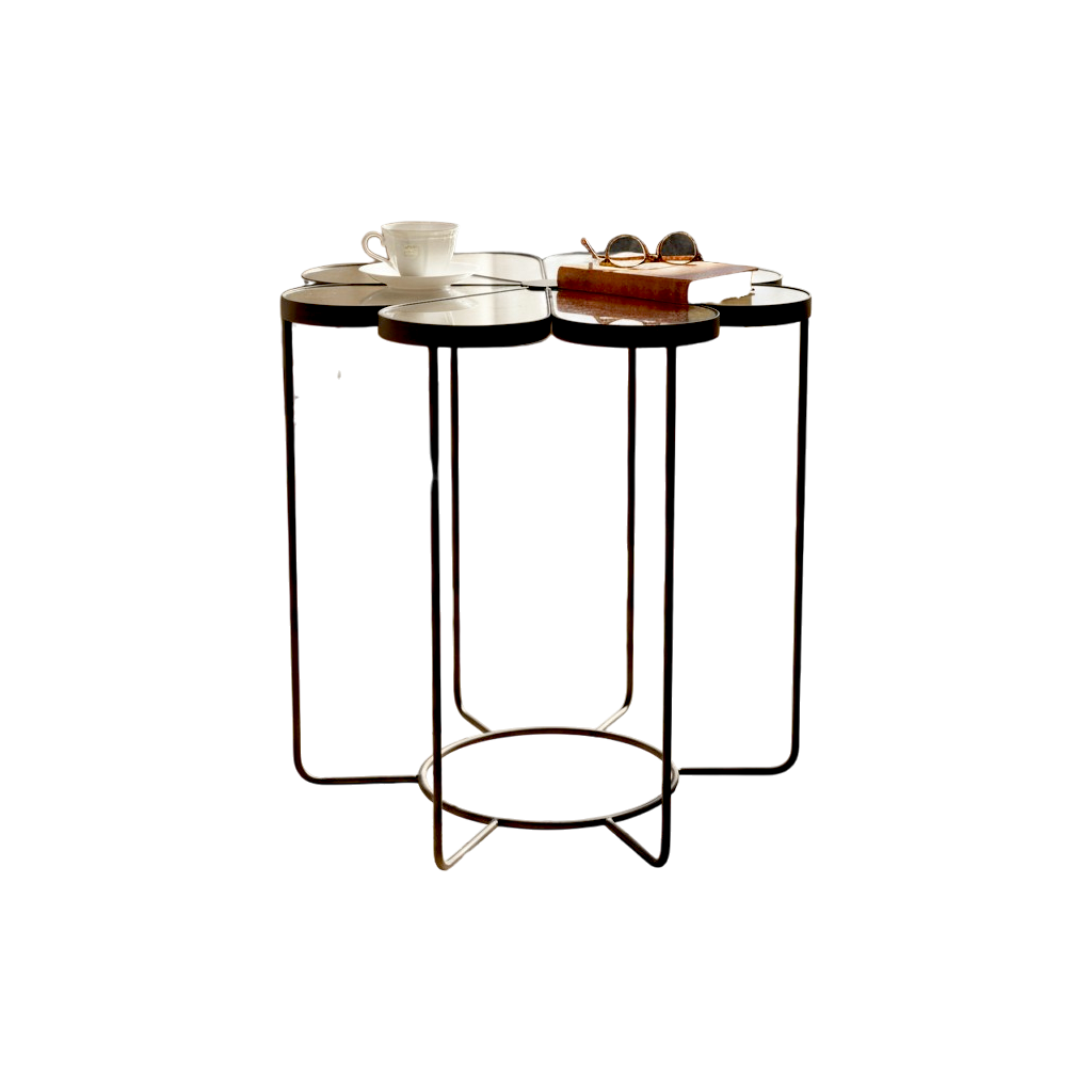 The Black Blossom Metallic Table-Top Mirror features a bold black frame with elegant flower detailing, creating a beautiful blend of style and craftsmanship. Its metallic finish adds durability and sophistication, while the decorative floral design makes it a perfect accent piece for dressing tables, bedrooms, boutiques, or home décor setups. With its sturdy stand and clear reflection, this mirror brings both function and artistic charm to any space.