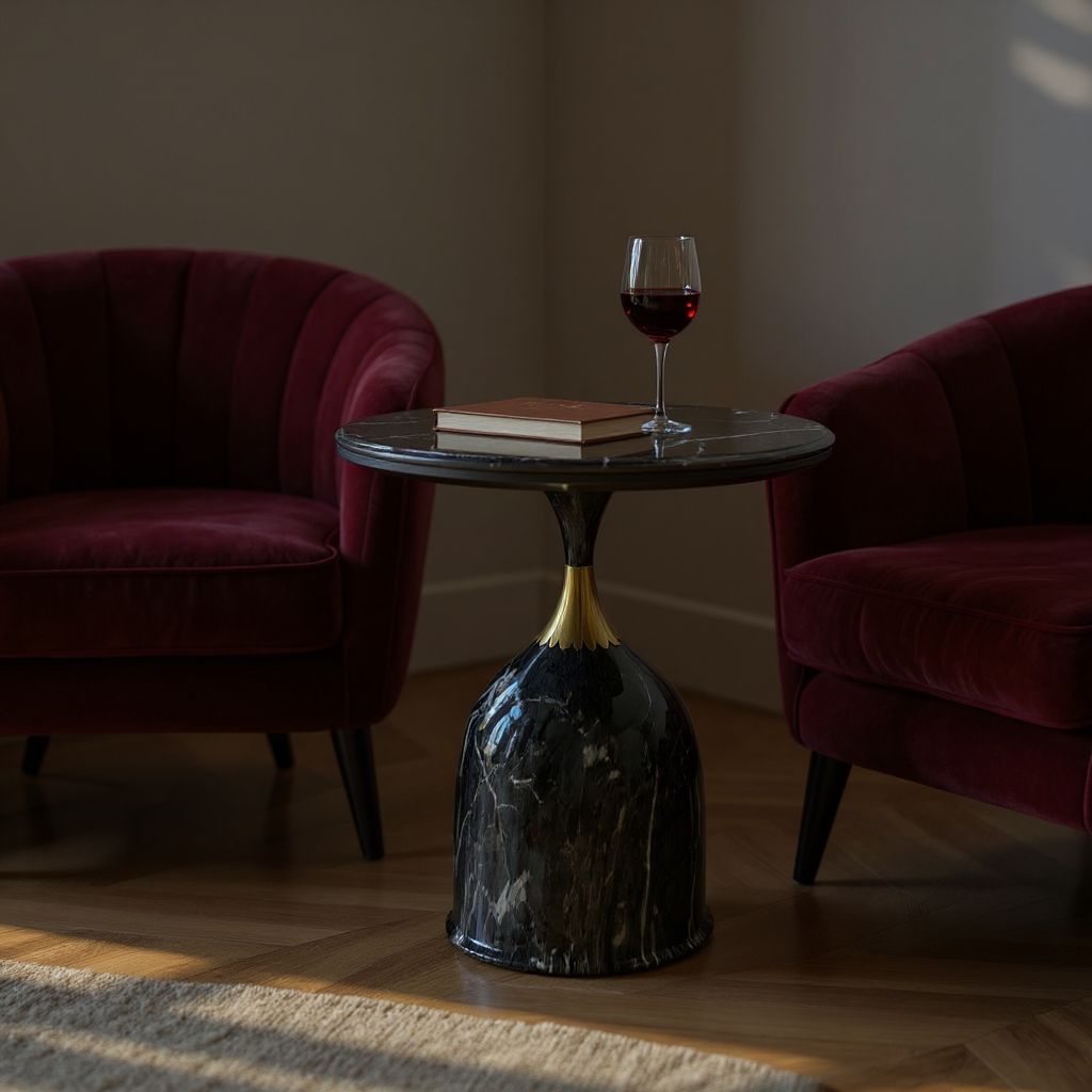The Elysian Marble Side Table is a refined balance of art and functionality. Featuring a polished black marble top with natural veining, it rests elegantly on a sculptural base accented with a golden detail, adding sophistication to any modern interior. Perfect for living rooms, lounges, or reading corners, this side table brings timeless elegance and contemporary flair. Durable, stylish, and versatile, it’s an exquisite accent piece that elevates any décor.