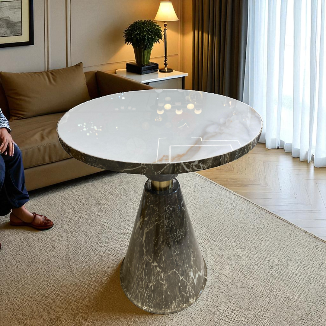The Imperial Marble Accent Table embodies luxury through its sculptural form and premium materials. A polished white marble top with delicate veining is perfectly balanced on a tapered grey marble base, accented with a subtle golden ring for an extra touch of refinement. Designed to complement modern and classic interiors alike, this side table is ideal beside sofas, lounge chairs, or as a stand-alone accent piece. Durable, stylish, and timeless, it brings sophistication to any living space.