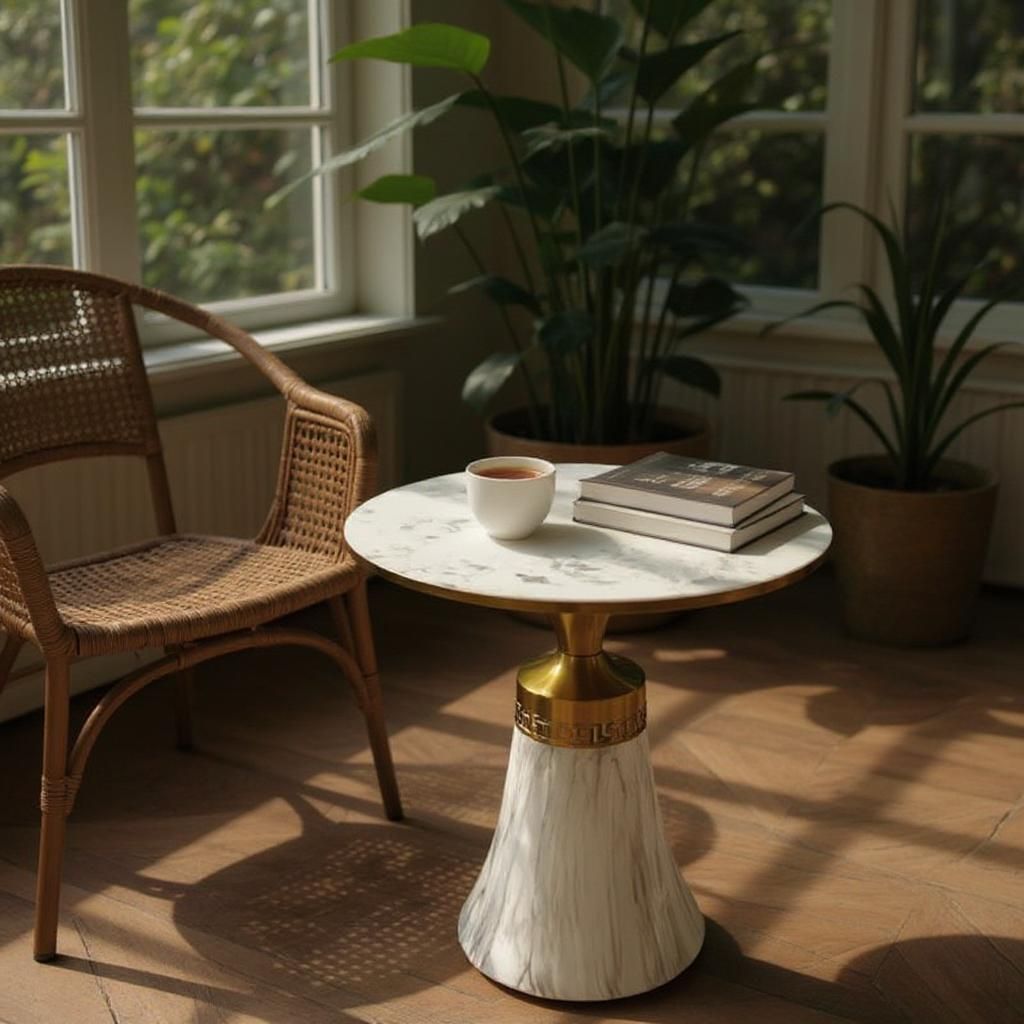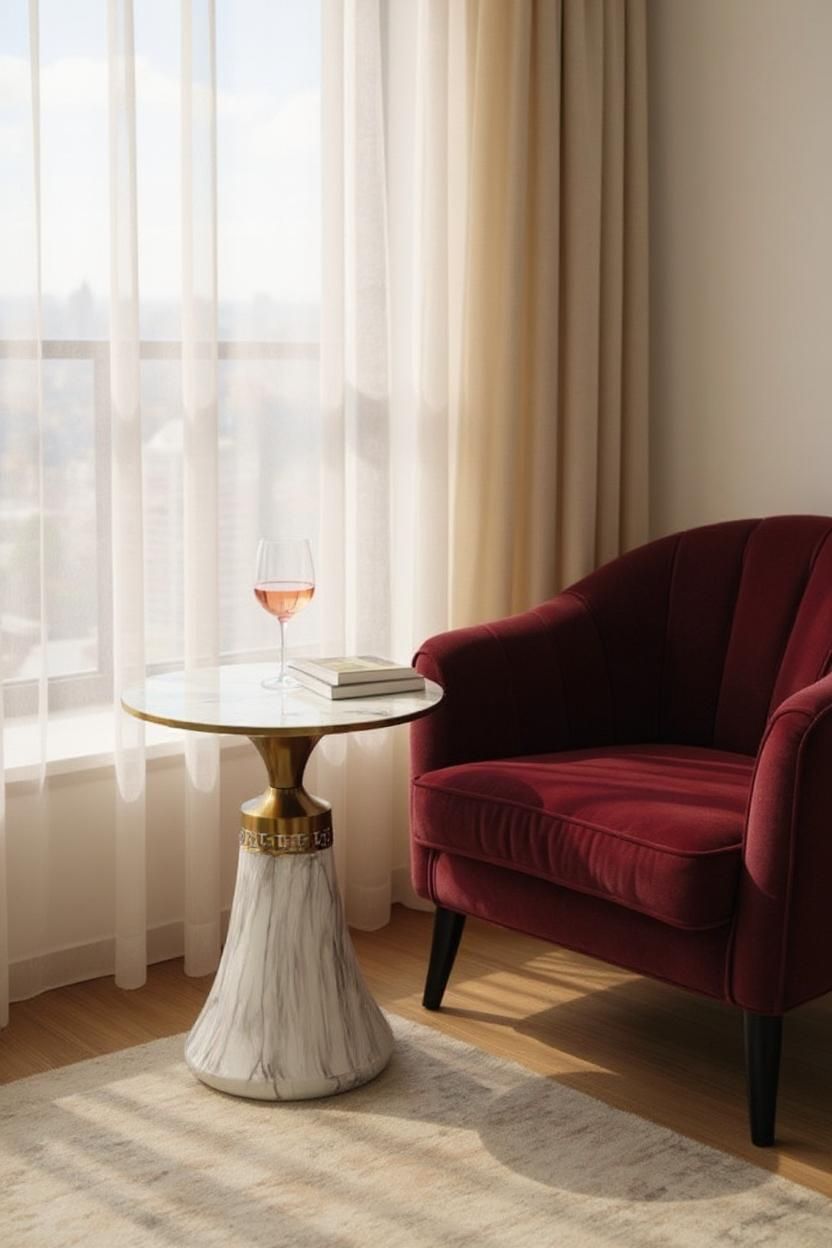 The LuxeVista Metallic Marble Texture Accent Table is a statement piece that blends modern elegance with timeless sophistication. Its exquisite marble-texture top captures the depth and beauty of natural stone, offering a luxurious surface that is smooth, refined, and highly durable. Resistant to scratches and everyday wear, it provides both visual appeal and long-lasting performance.
