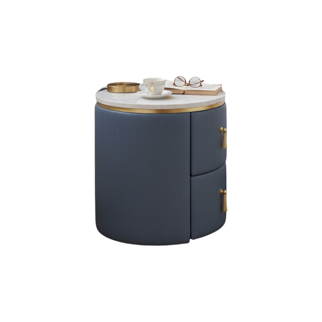 The SkyLuxe Marble Top Side Table brings a fresh, modern touch to any living space with its serene light blue finish and luxurious marble surface. Crafted from high-quality wood, this side table combines durability with elegance, featuring two spacious drawers that provide practical storage for your essentials—books, remotes, or personal items—keeping your space organized without sacrificing style. The polished marble top adds a sophisticated, timeless appeal, creating a striking contrast with the soft, calming blue hue of the wooden frame. Its clean lines, contemporary design, and subtle color make it a versatile piece that complements a variety of décor styles, from minimalist modern to chic coastal interiors. Ideal for placement beside sofas, armchairs, or beds, the SkyLuxe table serves as both a functional surface and a statement of refined taste, effortlessly enhancing your room with a harmonious blend of color, texture, and luxury. q