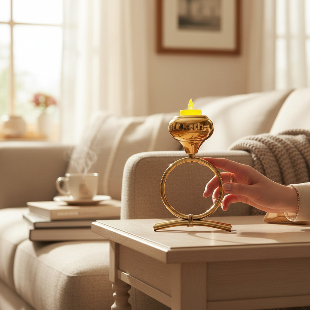 The Imperial Shine Lotus Crystal Candle Stand is crafted to bring a royal and luxurious feel to your décor. Featuring layered metallic lotus petals embellished with premium crystal accents, it creates a stunning visual effect when illuminated. Its elegant structure makes it suitable for modern interiors, festive displays, pooja setups, or special event styling. A timeless decorative piece that symbolizes purity, beauty, and prosperity.