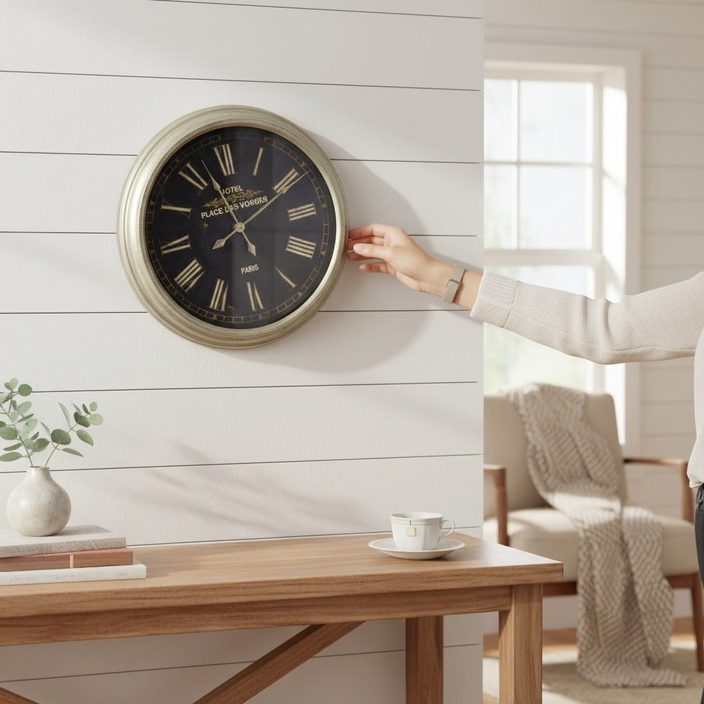 Classic Aura Premium Wall Clock ek simple yet premium design offer karta hai jo har type ke interior mein suit karta hai. Black dial aur white artistic numbers clarity aur elegance dono provide karte hain. Iska balanced design wall par clean aur organized look create karta hai, jisse room aur zyada stylish aur professional lagta hai.