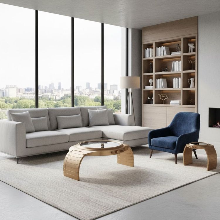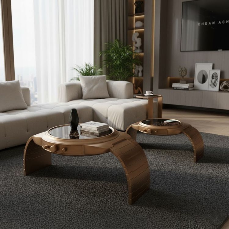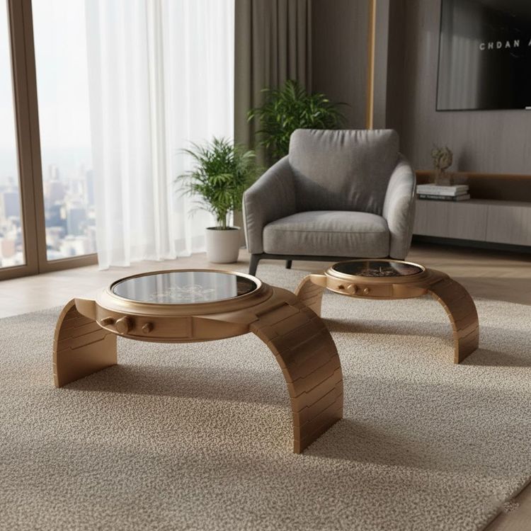 A luxurious set of tables with an exceptional design inspired by the elegance of high-end wristwatches — a stunning fusion of art, engineering, and golden sophistication in one captivating masterpiece.