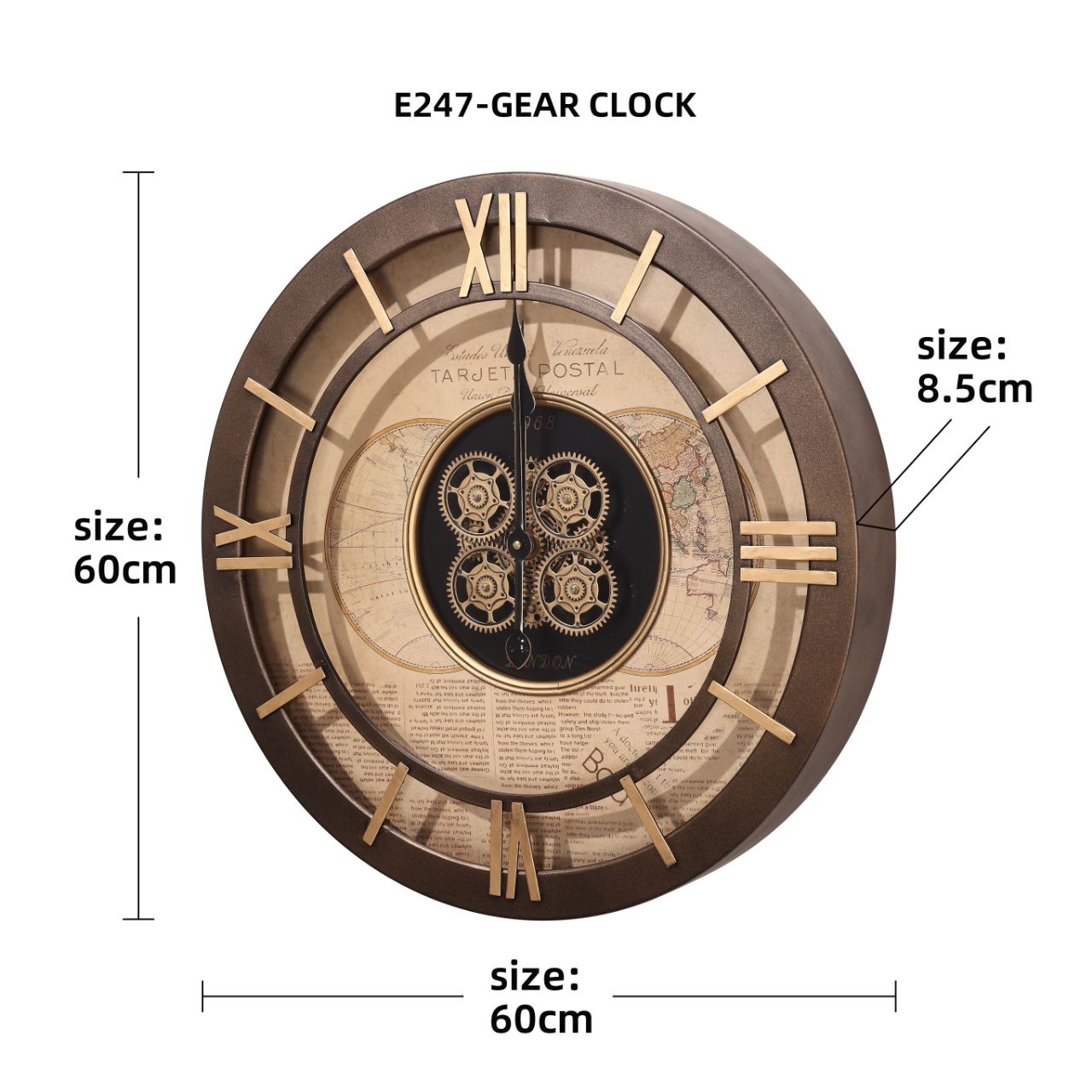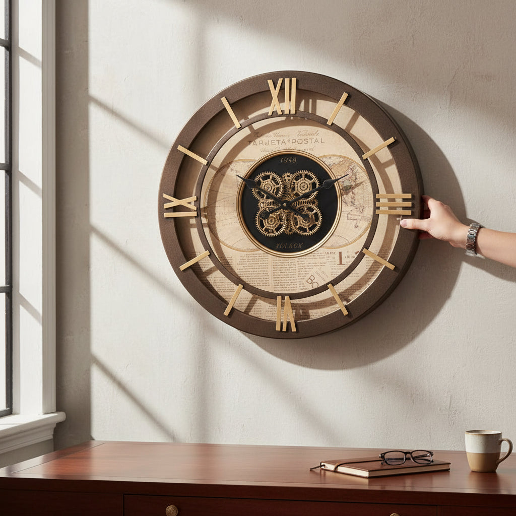 Combine art, function, and industrial elegance with the Navigator’s Gearfloor Clock. This striking piece features a world map design with intricately moving metallic gears, creating a dynamic visual centerpiece that doubles as a side table. Crafted from high-quality metal, its robust construction and sophisticated design make it perfect for living rooms, offices, or study spaces. The unique fusion of a floor clock, side table, and mechanical artistry turns any corner into a conversation starter. Functional, durable, and full of character, the Navigator’s Gearfloor Clock is the ultimate statement piece for lovers of vintage-industrial décor and world-inspired design.