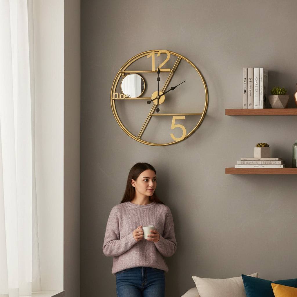 The Golden Orbit Modern Metal Wall Clock is a striking statement piece designed to elevate contemporary interiors. Featuring a sleek open-frame design with bold oversized numerals and a refined metallic gold finish, this clock blends functionality with artistic appeal. Its minimalist structure allows your wall color to shine through, creating depth and visual balance while keeping time in style.