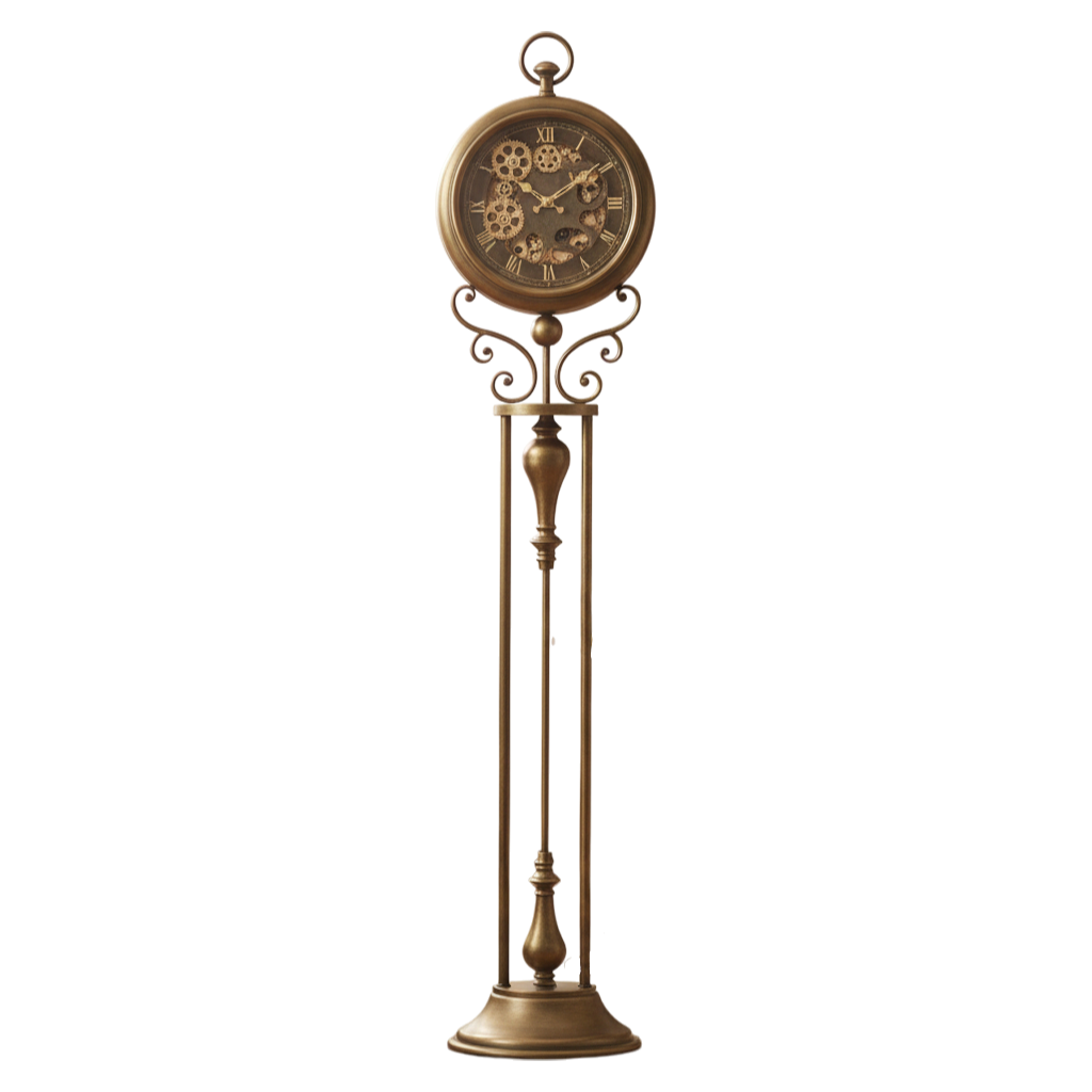 Elevate your interiors with the Industrial Black Gear Tripod Standing Clock, a striking combination of modern design and vintage industrial charm. Crafted from sturdy black metal, this standing clock features an intricate gear-inspired dial and a sleek tripod base, creating a bold focal point in any space.