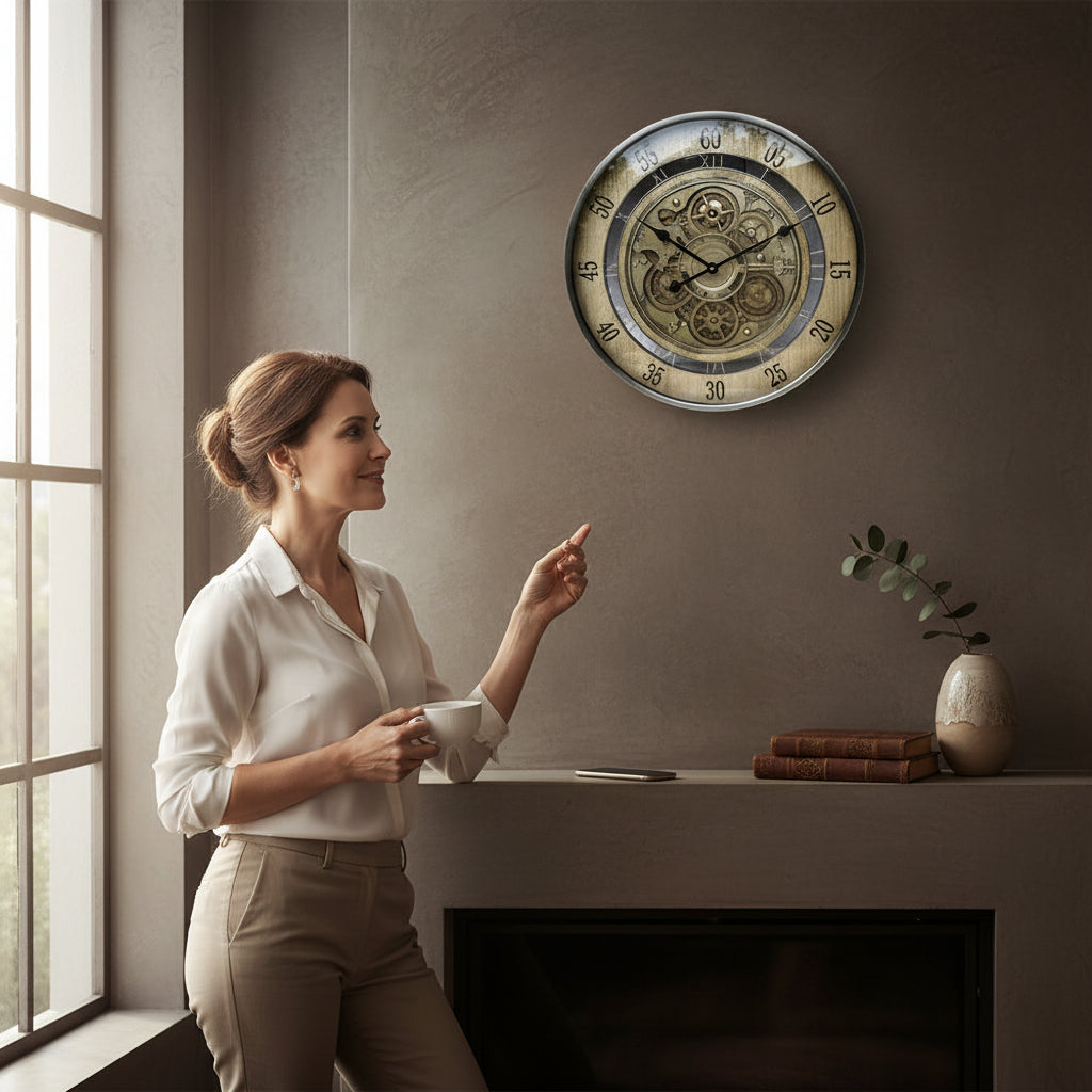 This wall clock seamlessly blends tradition with modern reliability, enhancing classic, industrial, or contemporary interiors with its distinctive character.