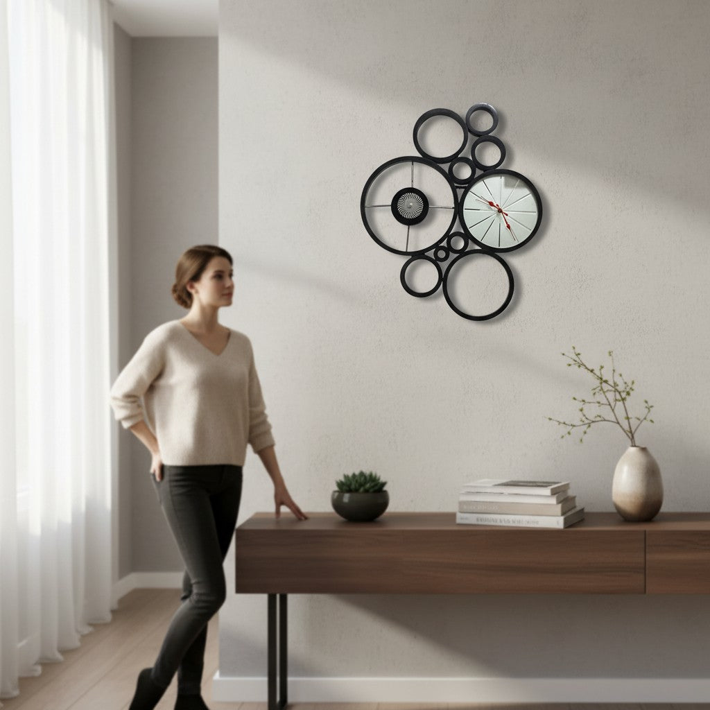 The Regal Vintage Metallic Wall Clock brings a touch of old-world grandeur to your space. With its polished metallic frame, bold numerals, and artfully crafted hands, this clock offers both functional timekeeping and a stylish decorative statement. Lightweight yet durable, it is perfect for living rooms, entryways, or office walls. A true blend of vintage aesthetics and contemporary craftsmanship, this clock enhances any décor with elegance and timeless charm.