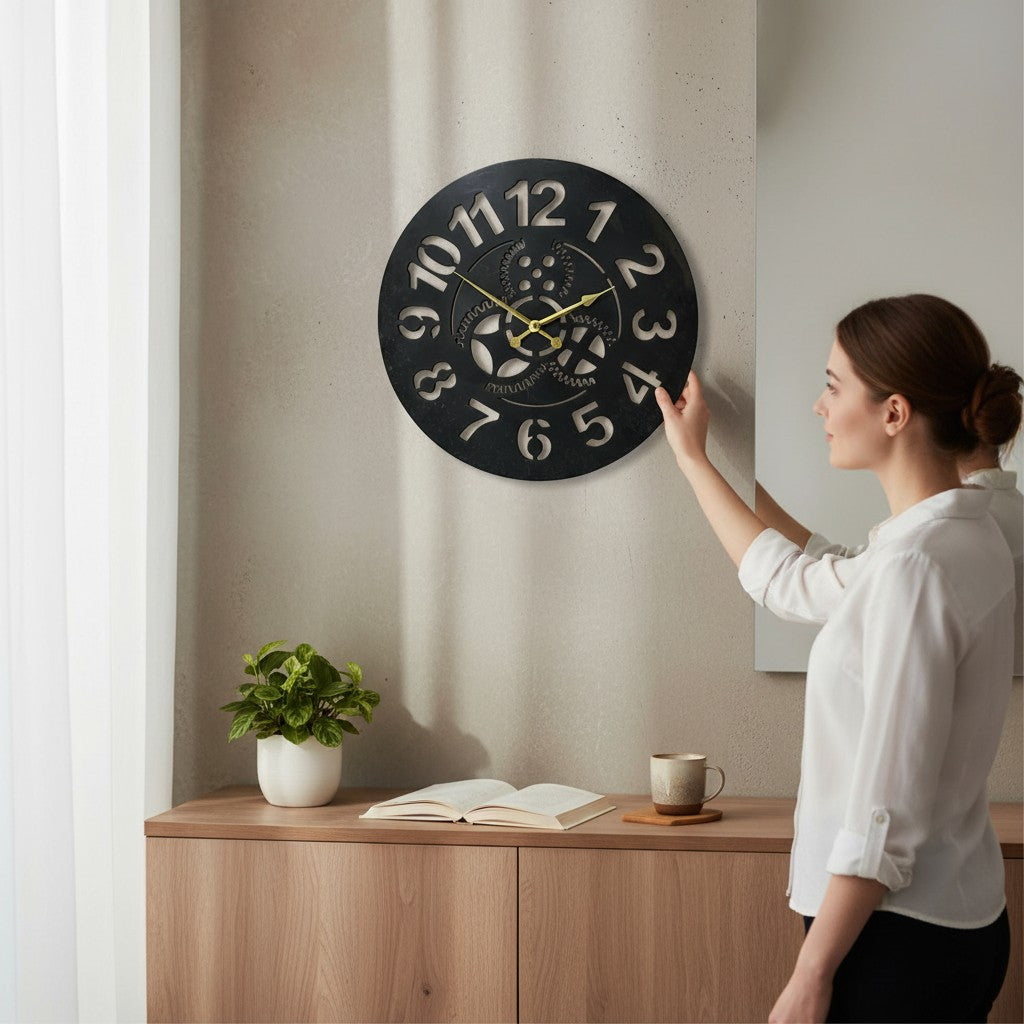 Elevate your space with the Royal Bronze Black Wall Timepiece, a striking blend of elegance and functionality. Featuring a sleek black finish complemented by bronze accents, this clock adds a touch of sophistication to any room. Its lightweight yet durable construction ensures long-lasting use, while the clear dial and bold numerals make reading the time effortless from anywhere. Perfect for living rooms, offices, or bedrooms, this wall timepiece combines style and practicality in one timeless design.