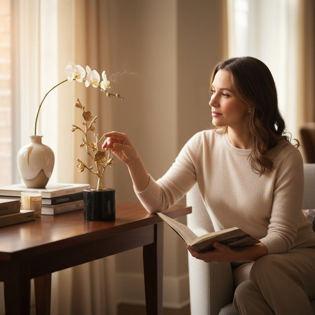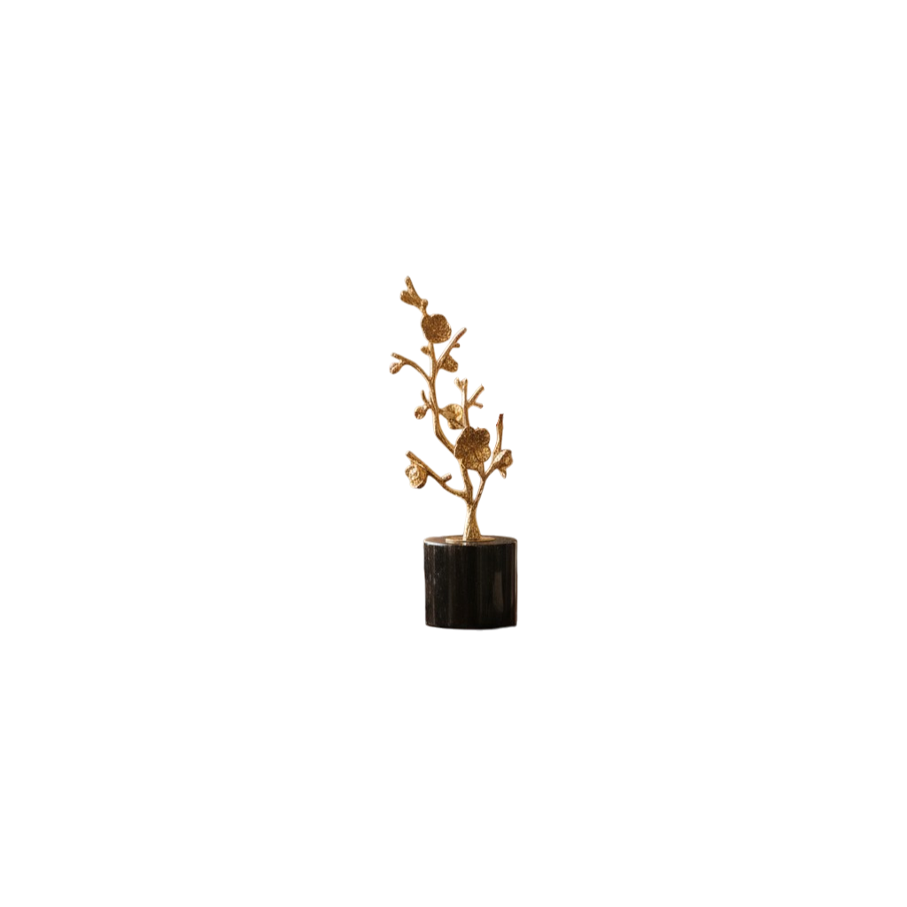 The ornate petals are carefully sculpted, reflecting a naturalistic charm that is both delicate and sophisticated. Its polished finish and subtle textures create a refined, radiant piece that shines in any light, bringing an air of grace to any space.