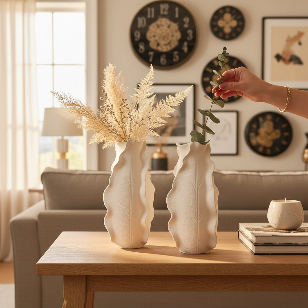 The Harmony Stack Contemporary Ceramic Vase blends simplicity with architectural beauty. Featuring a layered ring design and soft natural color, it creates a striking yet balanced presence in any space. This versatile vase works beautifully as a centerpiece, shelf décor, or entryway accent. Its timeless design ensures it enhances both modern and classic interiors effortlessly.