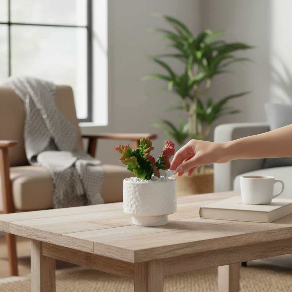 The SoftBloom Harmony Vase blends gentle colors with the purity of ceramic art. Its pot features a clean, graceful finish, while the floral arrangement above it provides soft movement and color. This décor piece suits minimalist, classic, and elegant interiors, adding a subtle yet meaningful decorative presence.