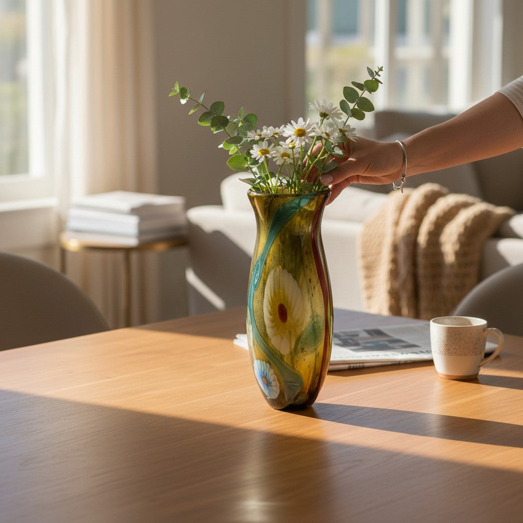 Featuring a sleek silhouette and premium-quality glass, the Aurora Luxe Vase brings sophistication to any space. Ideal for showcasing floral arrangements or used as a decorative accent, this vase enhances living rooms, dining tables, and office settings with pure elegance.