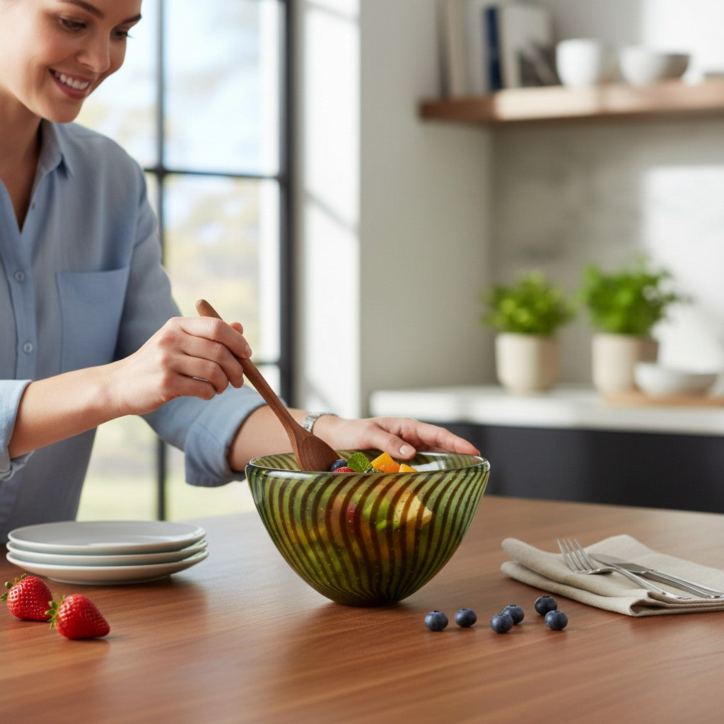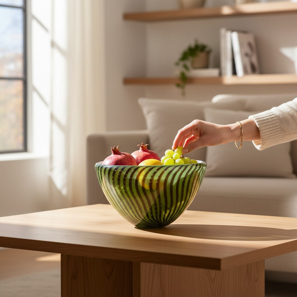 Inspired by the gentle spread of a blooming flower, the Celestial Bloom Dish features a glowing golden center surrounded by softly layered glass petals. Its thick, high-quality construction ensures long-lasting durability, while the artistic design makes it a standout décor element. Perfect for elevating living rooms, dining tables, or office spaces with a touch of elegance and sophistication.
