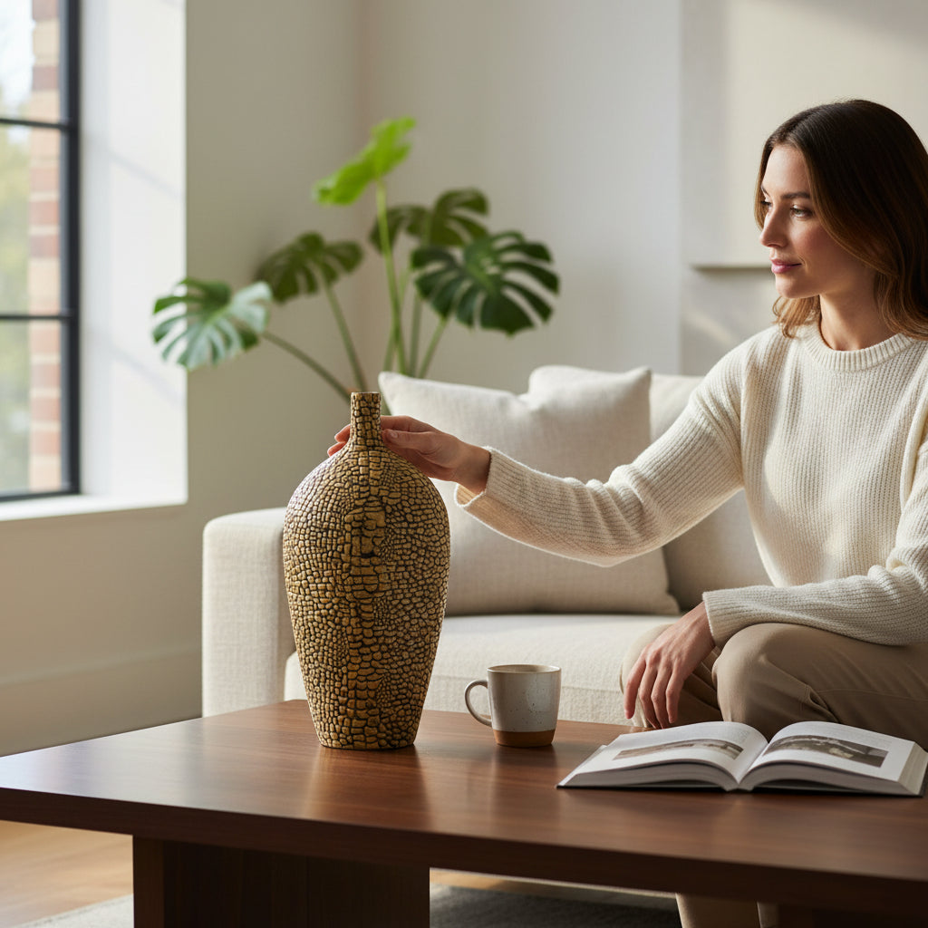 Embossed Crocodile-textured Ceramic Vase