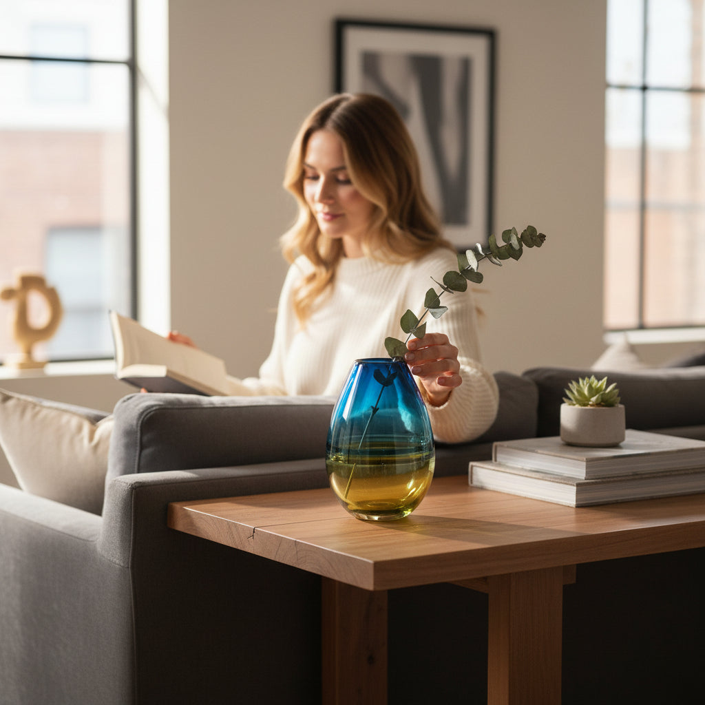 Enhance your home decor with this Heavy Blue Italian Glass Vase. Expertly crafted from high-quality Italian glass, its rich blue hue and substantial weight make it both a functional and decorative statement piece. Perfect for serving, display, or as a centerpiece, this bowl adds a touch of elegance and contemporary sophistication to any space.