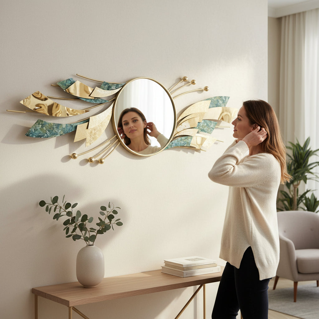 Add a touch of opulence with this gold-toned stainless steel oval wall mirror. The warm metallic finish radiates sophistication, making it a perfect accent for luxury interiors and designer spaces. Its oval shape softens room aesthetics while reflecting light to create a warm and inviting atmosphere. Built with premium stainless steel, the frame resists tarnishing and corrosion, ensuring long-lasting beauty. Ideal for living rooms, bedrooms, and boutique-style interiors, this mirror elevates décor with timeless elegance.