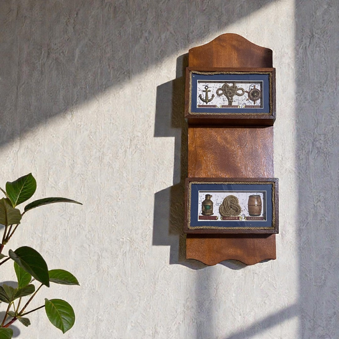 The "Nautical Treasures Wall Art" brings the spirit of the sea into your home with its charming collection of vintage maritime symbols. Featuring anchors, a ship's wheel, and other nautical elements, this wooden wall piece offers a classic, rustic appeal. The rich wood tones and carefully framed designs create an inviting, coastal atmosphere that evokes the timeless allure of the ocean. Perfect for beach cottages, living rooms, or entryways, this piece serves as a nostalgic tribute to the sea and its enduring influence on art and culture. Whether you love nautical themes or appreciate unique craftsmanship, this wall art adds a touch of vintage charm to any space.