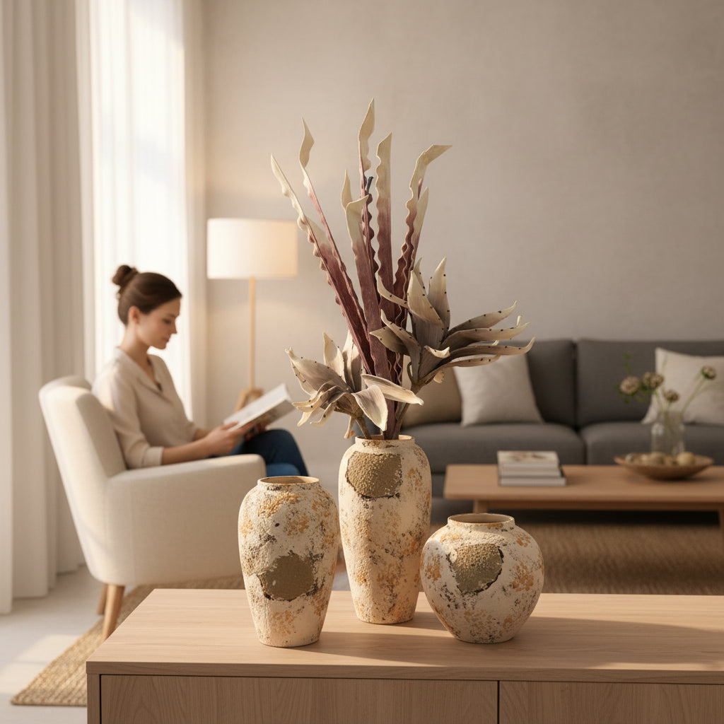 The Emerald Epoch Ceramic Vase draws inspiration from a time beyond memory, where art and nature existed in seamless harmony. Its rich emerald glaze is intentionally uneven, allowing darker and lighter tones to emerge like geological strata exposed over time. The silhouette feels ceremonial, as though once used in ritual or preservation, giving the piece a sense of history and reverence. Hand-finished details ensure that no two pieces are exactly alike, reinforcing its role as an individual artifact rather than a mass-produced object. The Emerald Epoch Ceramic Vase transforms any room into a space of reflection, depth, and quiet luxury.