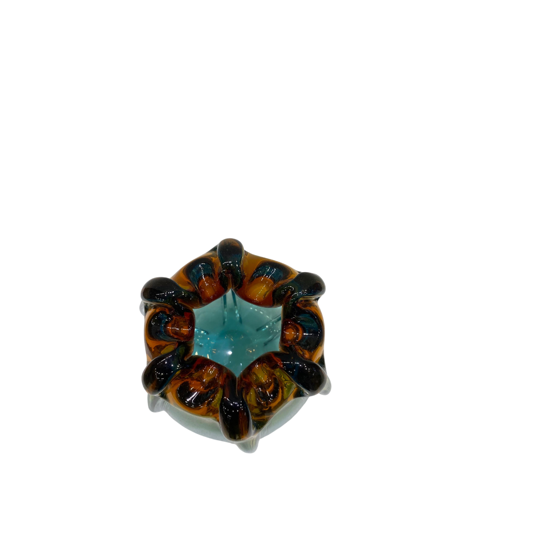 Brighten your home with this Heavy Blue and Yellow Italian Glass Vase. Crafted from high-quality Italian glass, its vibrant blue and yellow tones and substantial weight make it a striking decorative piece. Perfect as a centerpiece, for serving, or as a stylish accent on shelves or tables, this bowl adds a bold, contemporary touch to any room.
