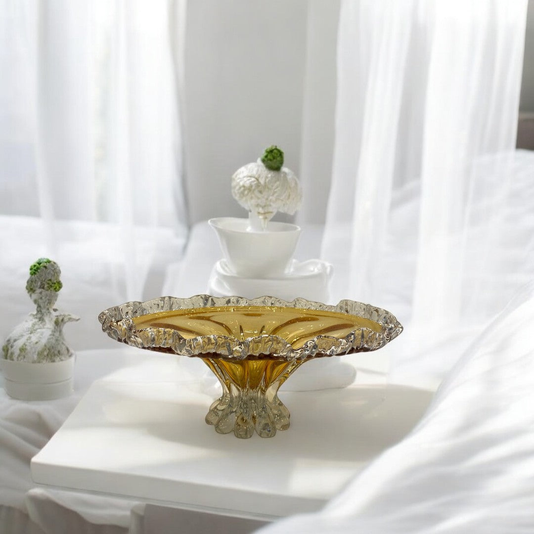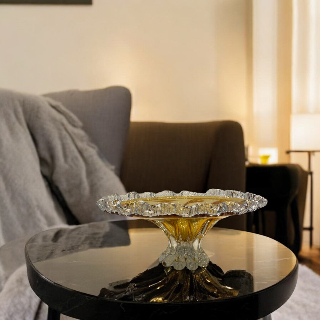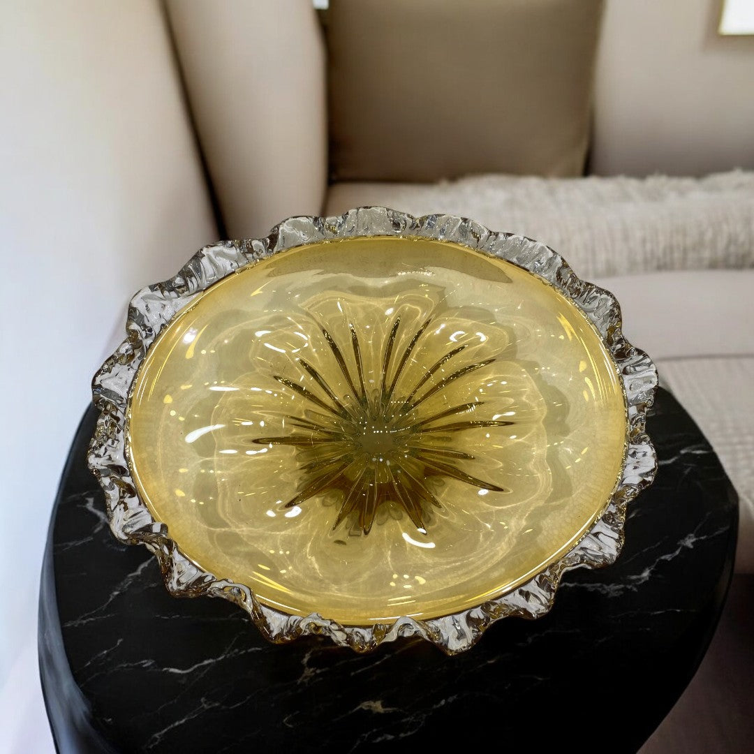 Add a touch of luxury to your decor with this Heavy Champagne Italian Glass Bowl. Expertly crafted from high-quality Italian glass, its rich champagne hue and substantial weight create a sophisticated and elegant presence. Ideal as a centerpiece, for serving, or as a decorative accent, this bowl brings timeless style and contemporary charm to any space.