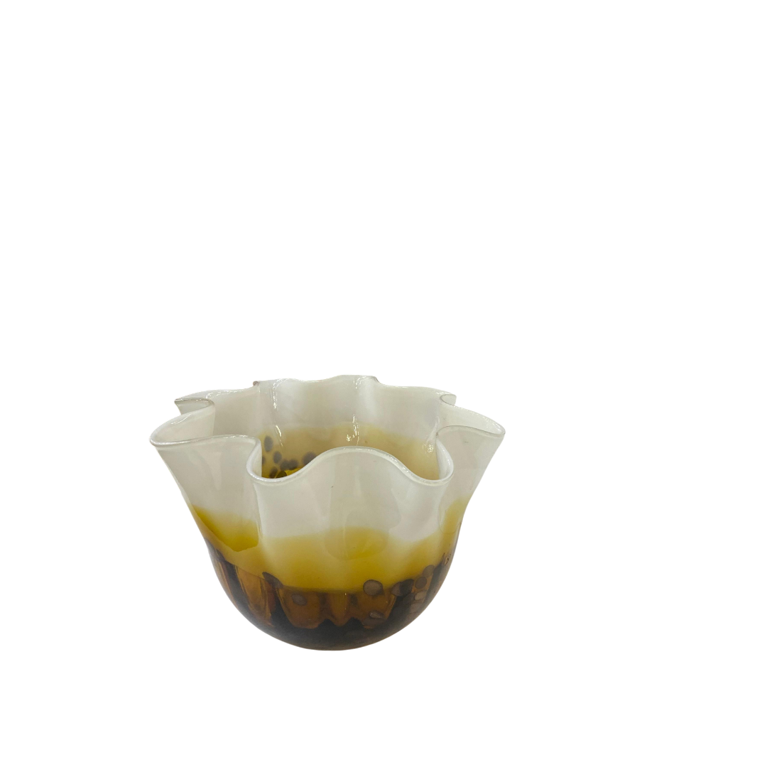 A beautifully handcrafted Italian art glass bowl featuring a captivating swirl pattern in sunny yellow and crisp white tones. Its fluid form and smooth, glossy finish showcase exceptional craftsmanship and artistic flair. Perfect as a statement centerpiece or decorative accent, this bowl brings a touch of vibrant elegance and timeless Italian design to any home décor.